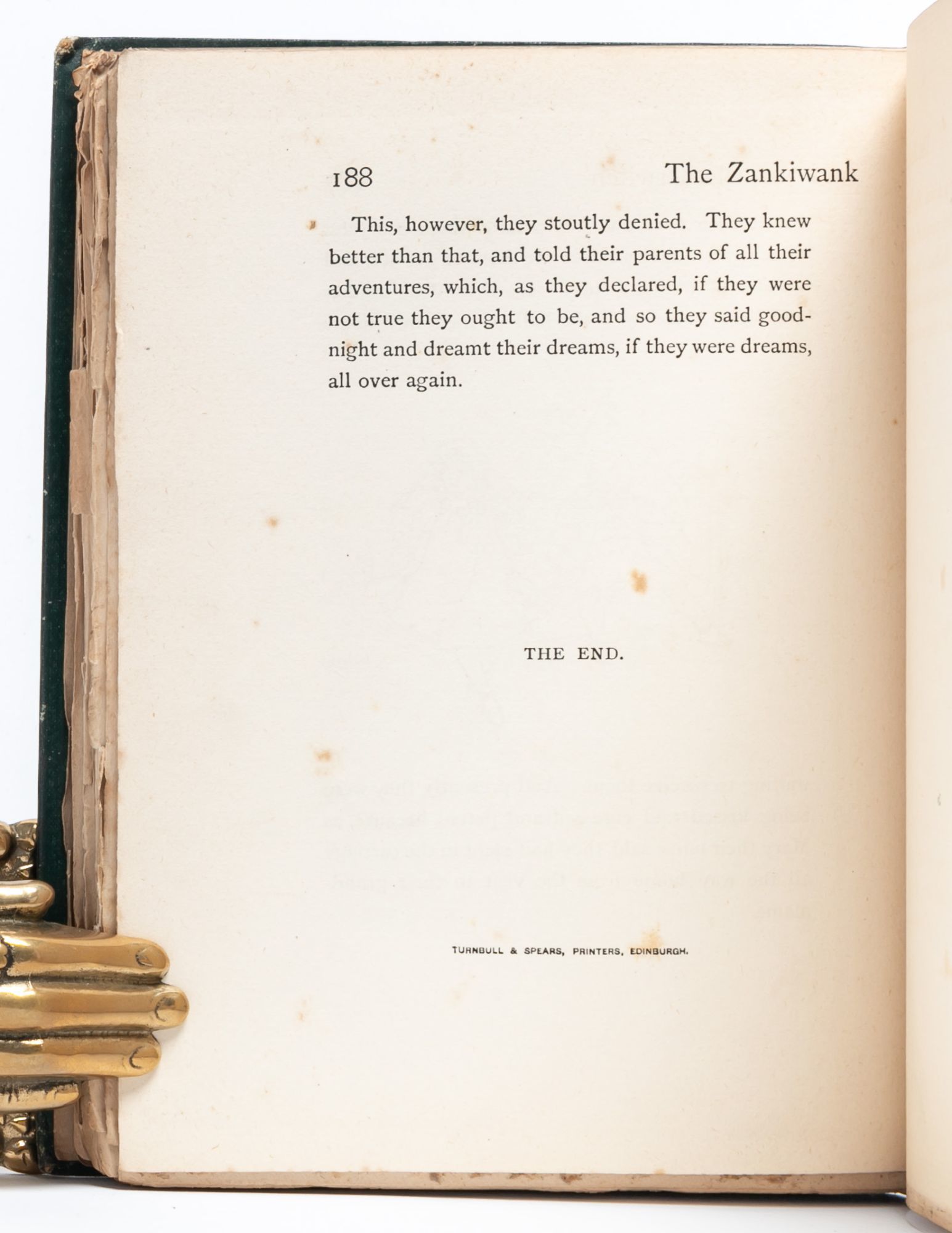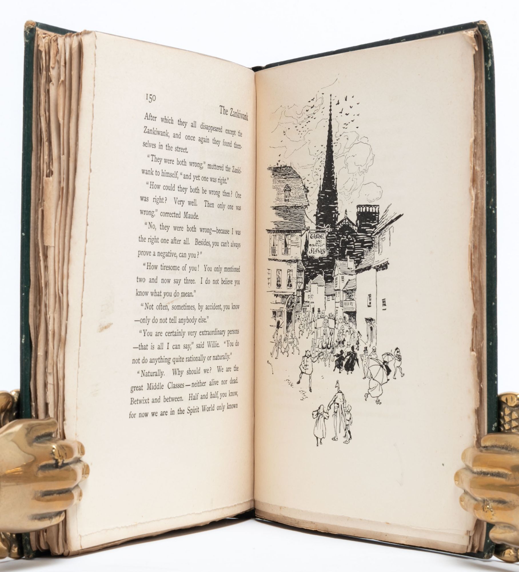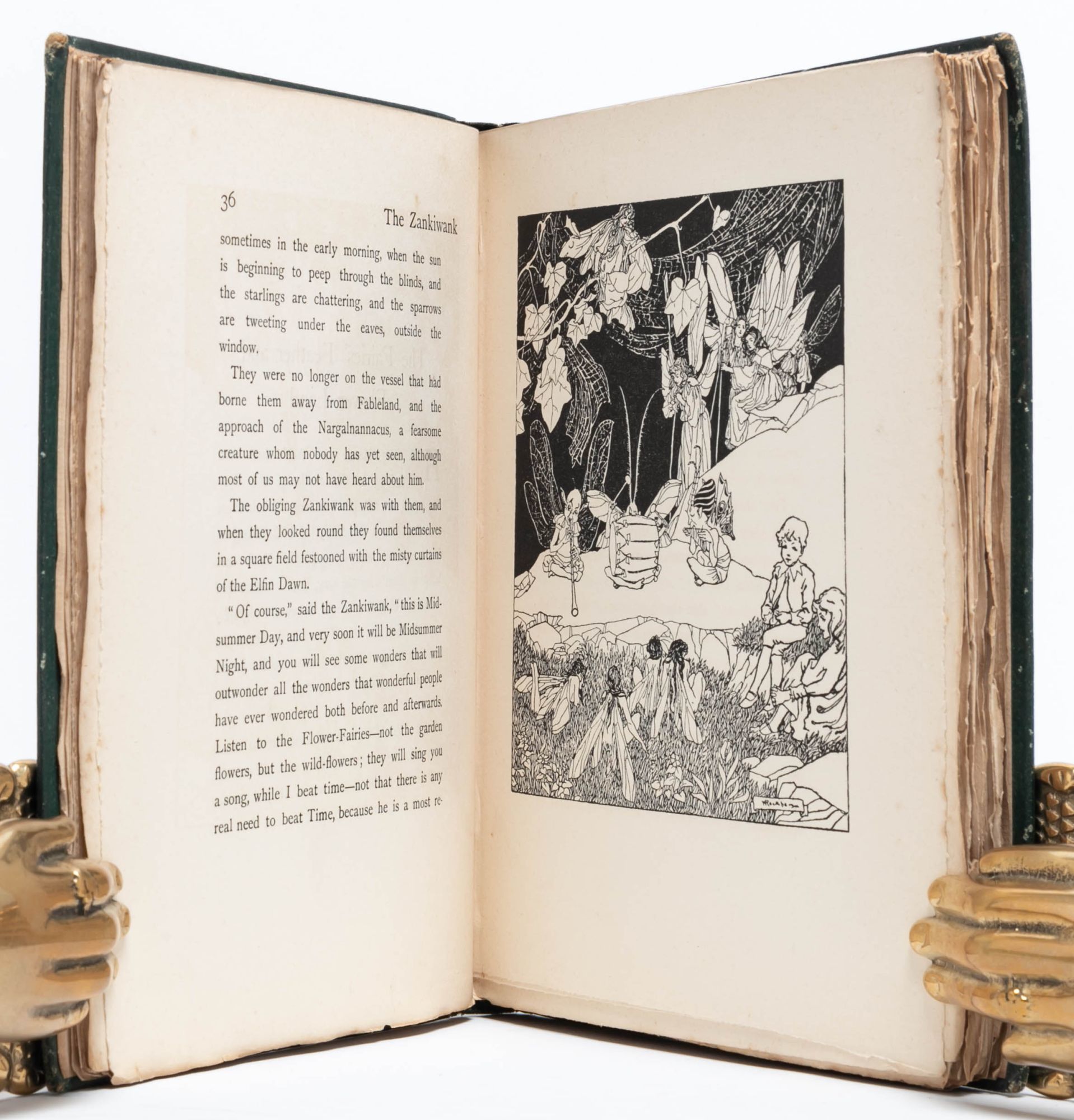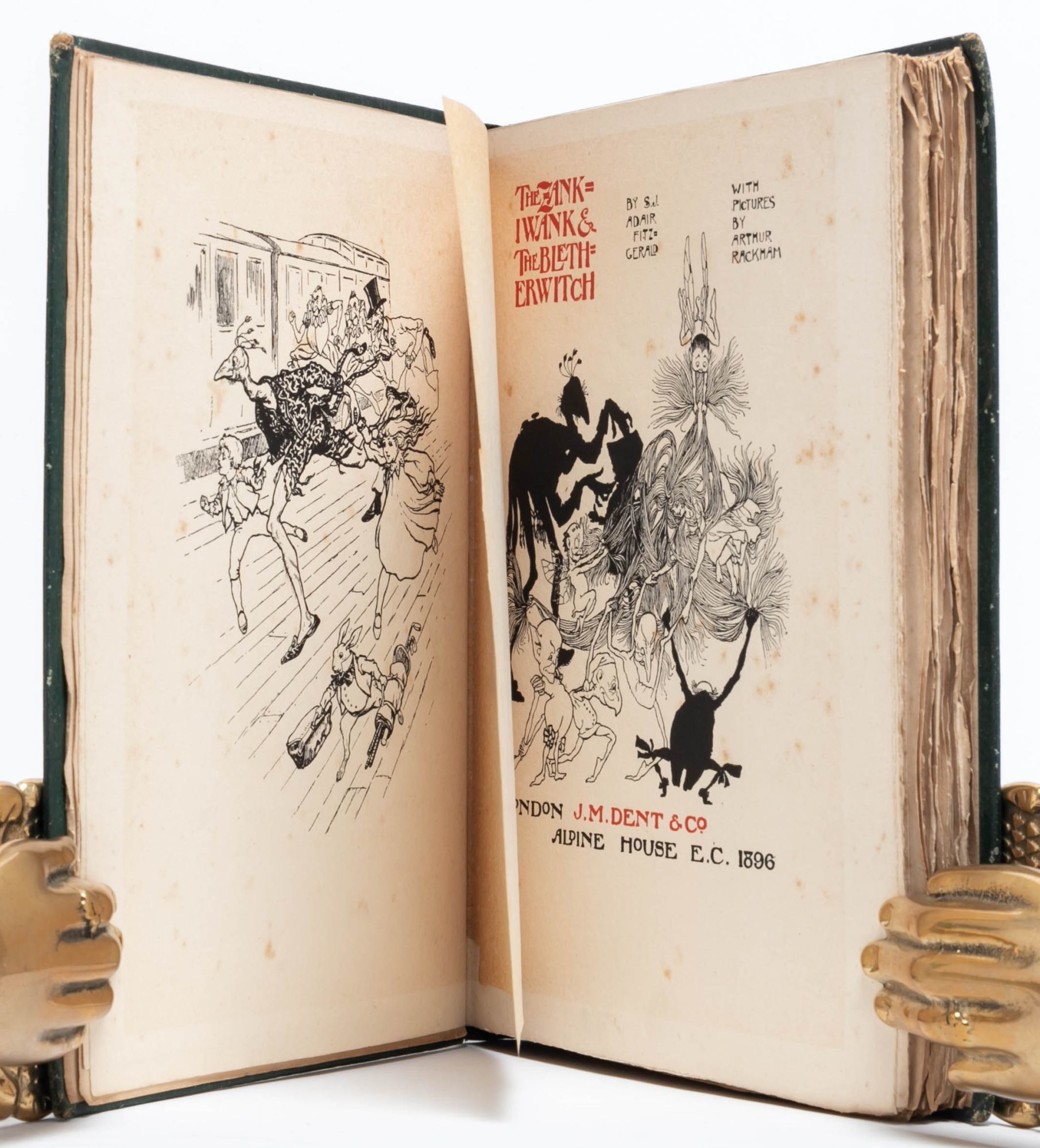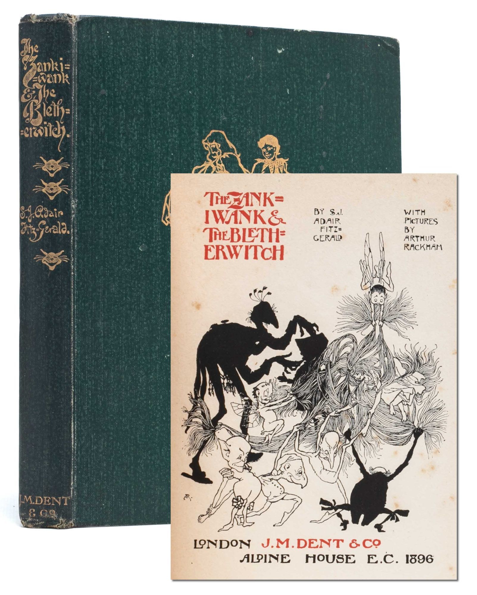 A significant copy of Rackham’s first book featuring “fantastic” creatures that would come to define his signature style. "It is... with the illustrations for The Zankiwank and the Bletherwitch that the true Rackham fantasy begins to emerge consistently, and this might well be called the first good Rackham. Even the subtitle [on the half-title only] of this book augurs well for Rackham, as it is described as 'An Original Fantastic Fairy Extravaganza,' and as the titlepage demonstrates, there is almost no limit to how extravagant the illustrator might be. There is no color in this book, but its forty [one] line illustrations reveal a new Rackham to the world..." (Gettings). "Here, in the imaginative silhouettes of the attenuated, weirdly double-jointed ostrich-like figure of the Zankiwank, Arthur is finding a commercial, even a career outlet, for the 'fantastic and the imaginative' which had preoccupied him from an early age" (Hamilton).
