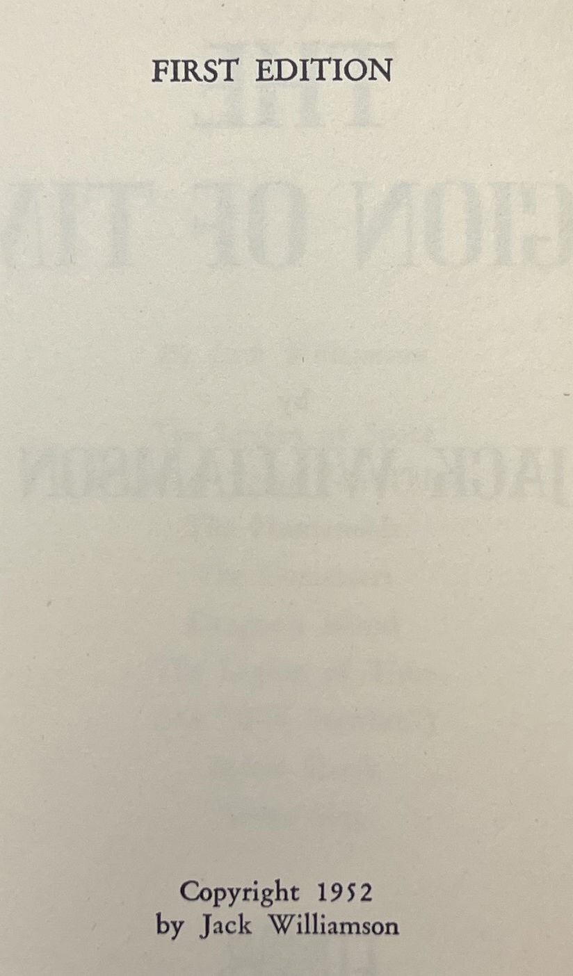 Reading: Fantasy Press, 1952. First Edition. Hardcover. Near Fine/Fine. Near Fine in a Fine jacket, unclipped ($3.00). Green cloth with dulled gilt lettering on the spine. Square and firmly bound, a few faint spots of foxing at the fore-edge, clean internally. Williamson's novel of intergalactic warfare in search of perfection of the human race.