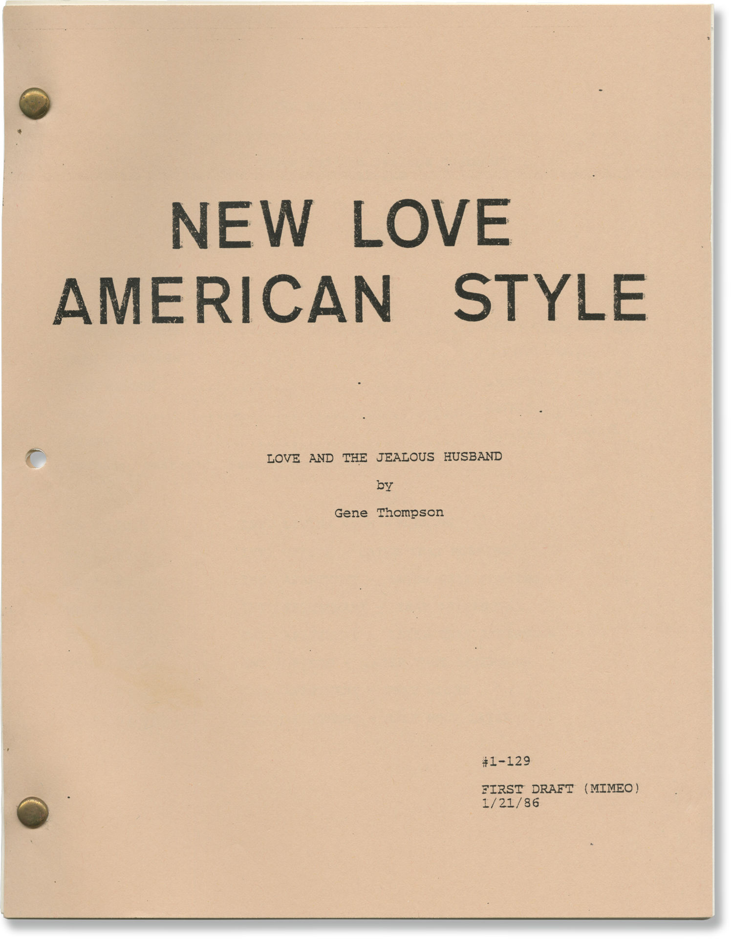 Beige titled wrappers, noted as FIRST DRAFT on the front wrapper, production No. 1-129, dated 1/21/86, with credits for screenwriter Gene Thompson. Title page integral with front wrapper. 28 leaves, with last page of text numbered 27. Xerographic duplication. Pages Near Fine, wrapper Near Fine, bound with two gold brads.