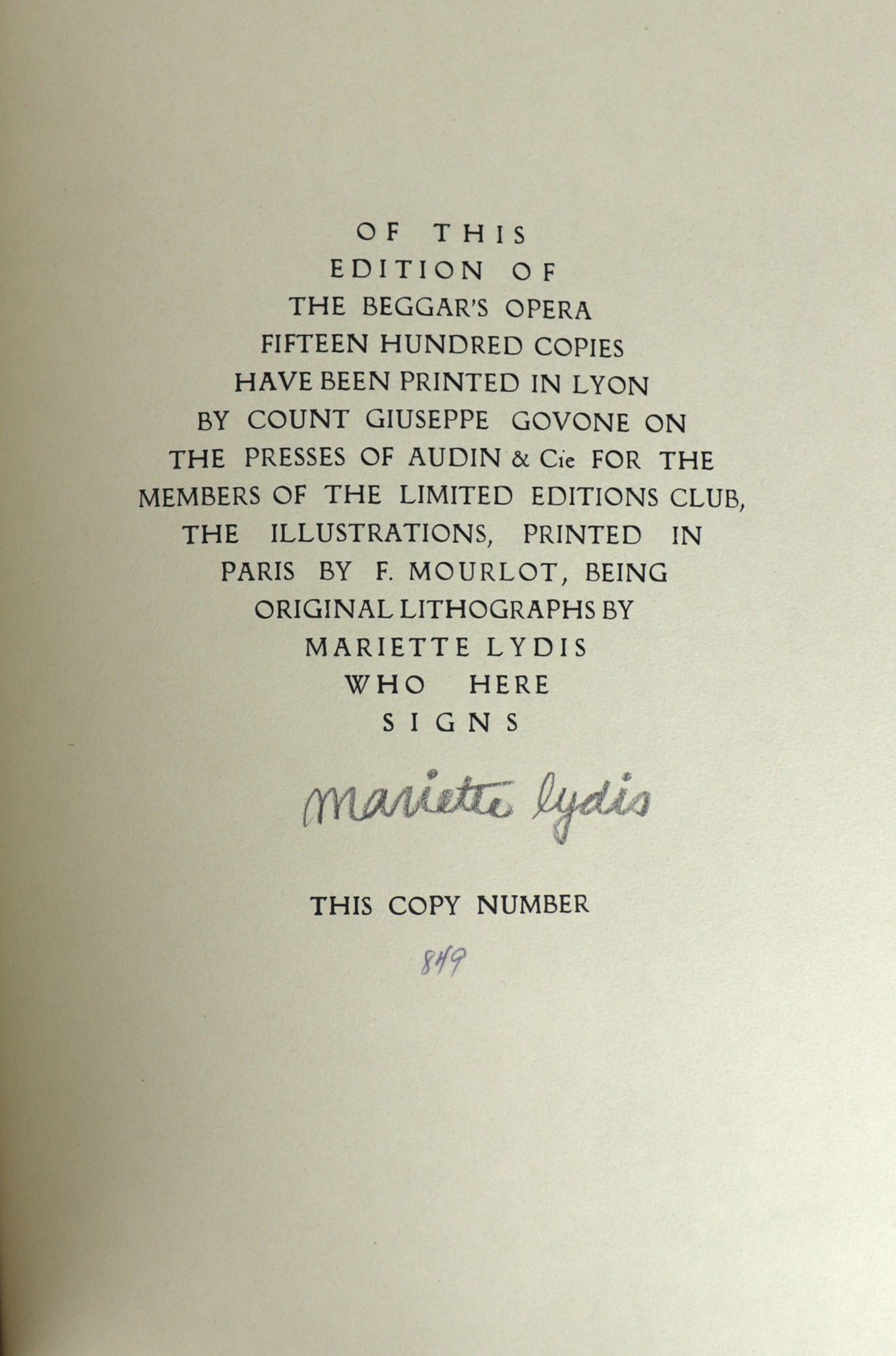 Paris: Printed for the Members of The Limited Editions Club by G. Govone, 1937. Very Good +. Paris: Printed for the Members of The Limited Editions Club by G. Govone, 1937. Limited Edition, Signed by illustrator Mariette Lydis and numbered 849 of 1500 copies on colophon at back. Large octavo (25 cm); [180]pp. Fifteen (15) lithographic plates full-page throughout, collated complete. Boards full bound in dark blue buckram, stamped blind and in gilt. Top edge gilt; fore- and bottom edges deckled. Housed in publisher's slipcase with blue printing to spine.