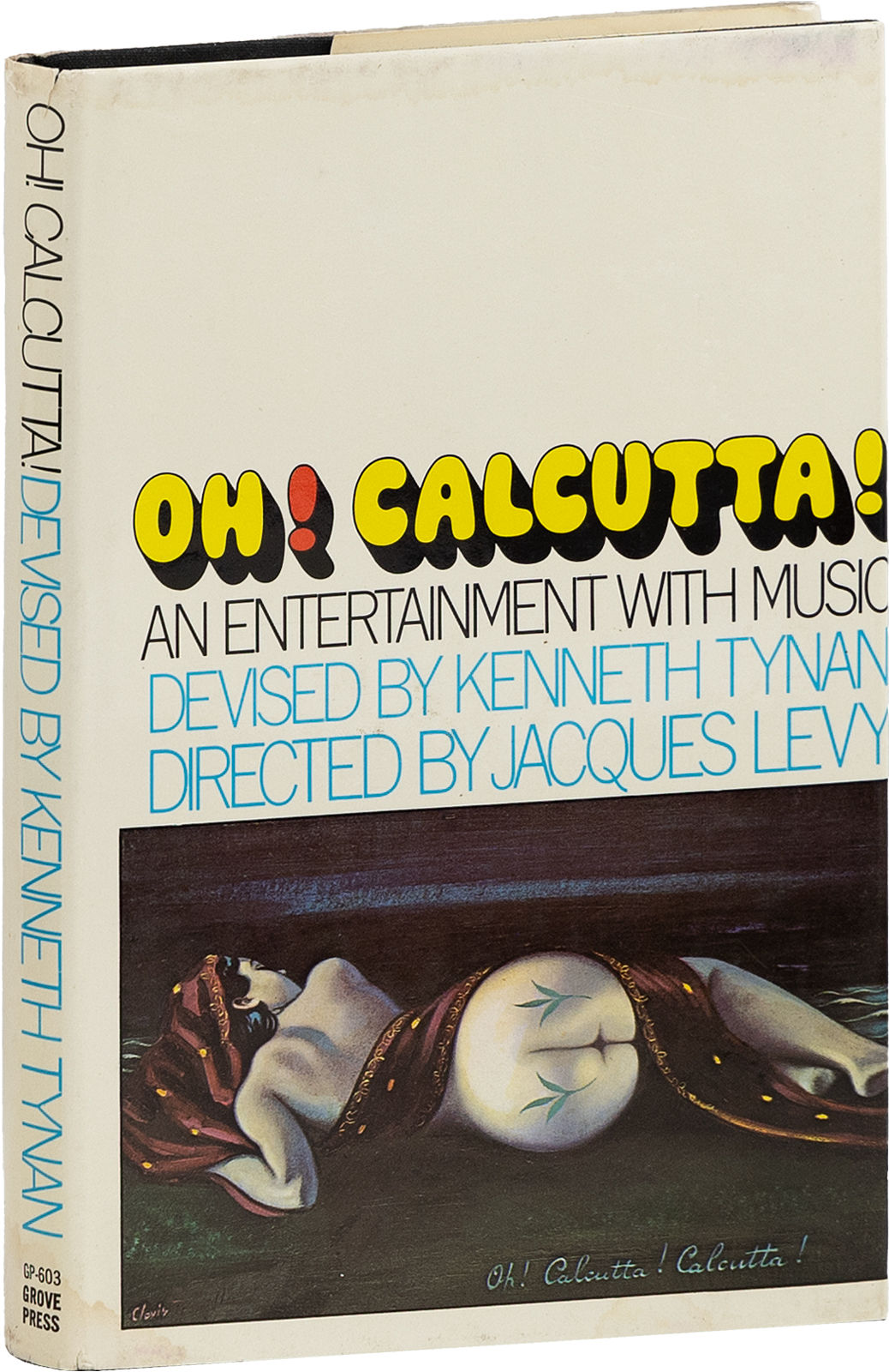 New York: Grove Press, Inc, 1969. First Edition. First Printing, cloth issue. Octavo (21cm); black cloth-covered boards, with titling stamped in metallic blue on spine; dustjacket; [8],9-190pp. Book includes photographic plates (halftones) throughout of the controversial, disrobed theatre performance. Some shelf-wear, trivial dustiness to cloth, else Fine. In a supplied dustjacket, price-clipped, with light shelfwear, and shallow dampstains to upper edge of front panel, base of spine, and upper rear flap fold; Very Good. A bawdy musical, with contributors including Samuel Beckett, Julian Barry, John Lennon, Sam Shepard, Edna O'Brien, and Pat McCormick. [82238].