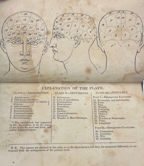 New York: Charles S. Francis, 1833. First edition. Hardcover. Good. 47pp. Sextodecimo [15cm]. Bound in green cloth, with title label on front board. Moisture damage to boards and textblock. Prior owner's signature on front pastedown. Foxing throughout textblock. An intro to the pseudoscientific study of phrenology: An analysis of skull shape to predict personality and traits, popular in the 19th century. With a diagram illustration.