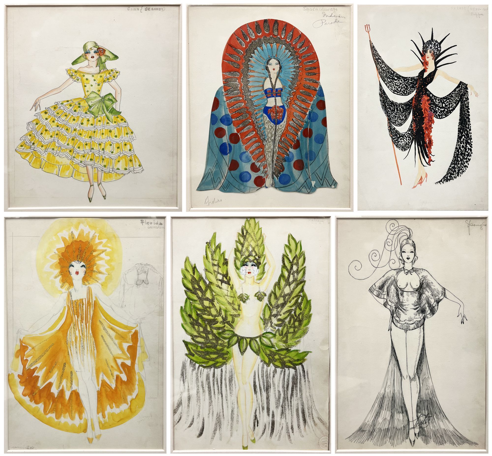 Six (6) Original 1920s Costume Designs by the Lester Costume Co