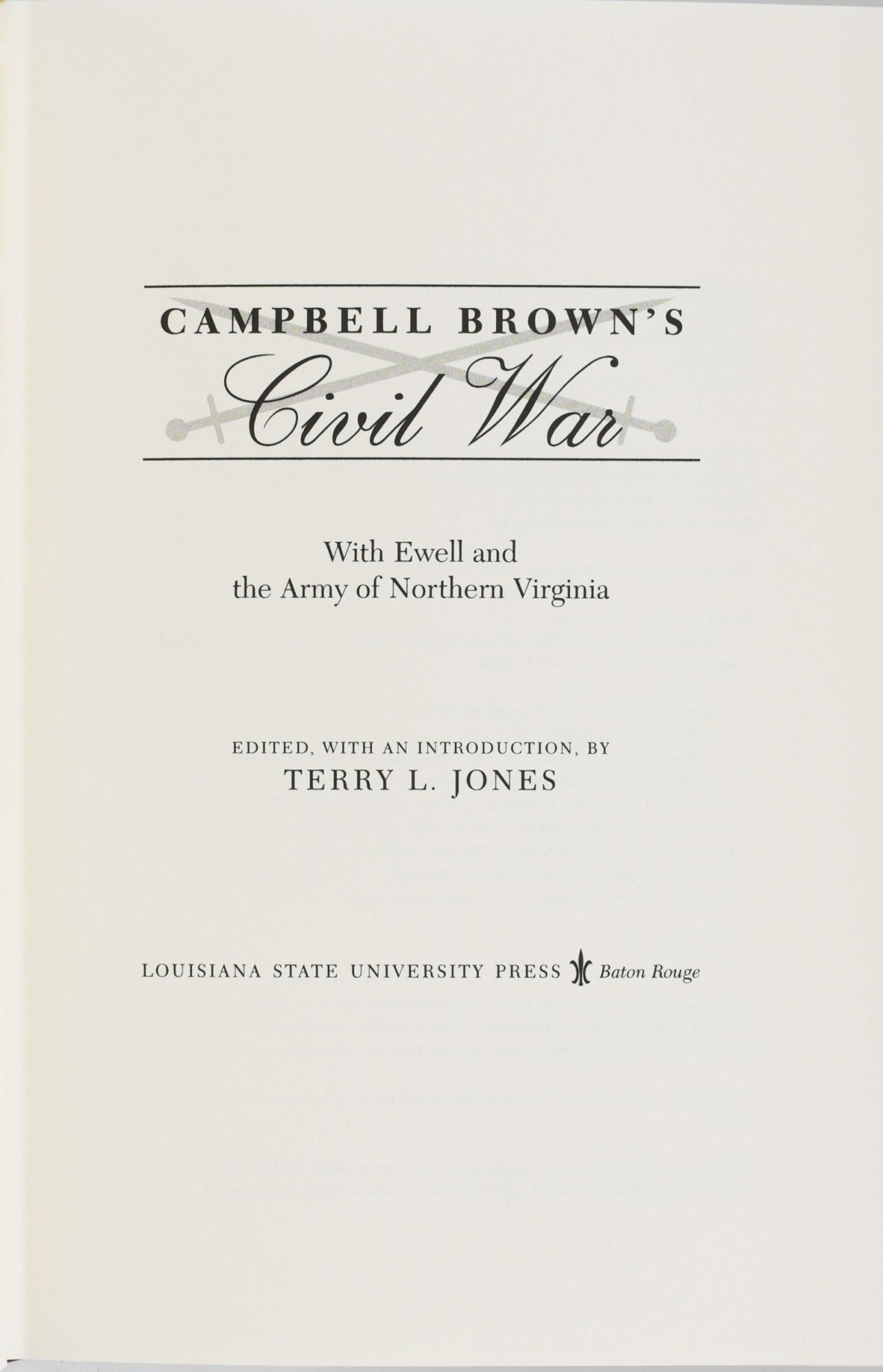 [CIVIL WAR] [REVIEW COPY] CAMPBELL BROWN'S CIVIL WAR. WITH EWELL AND THE ARMY OF NORTHERN VIRGINIA