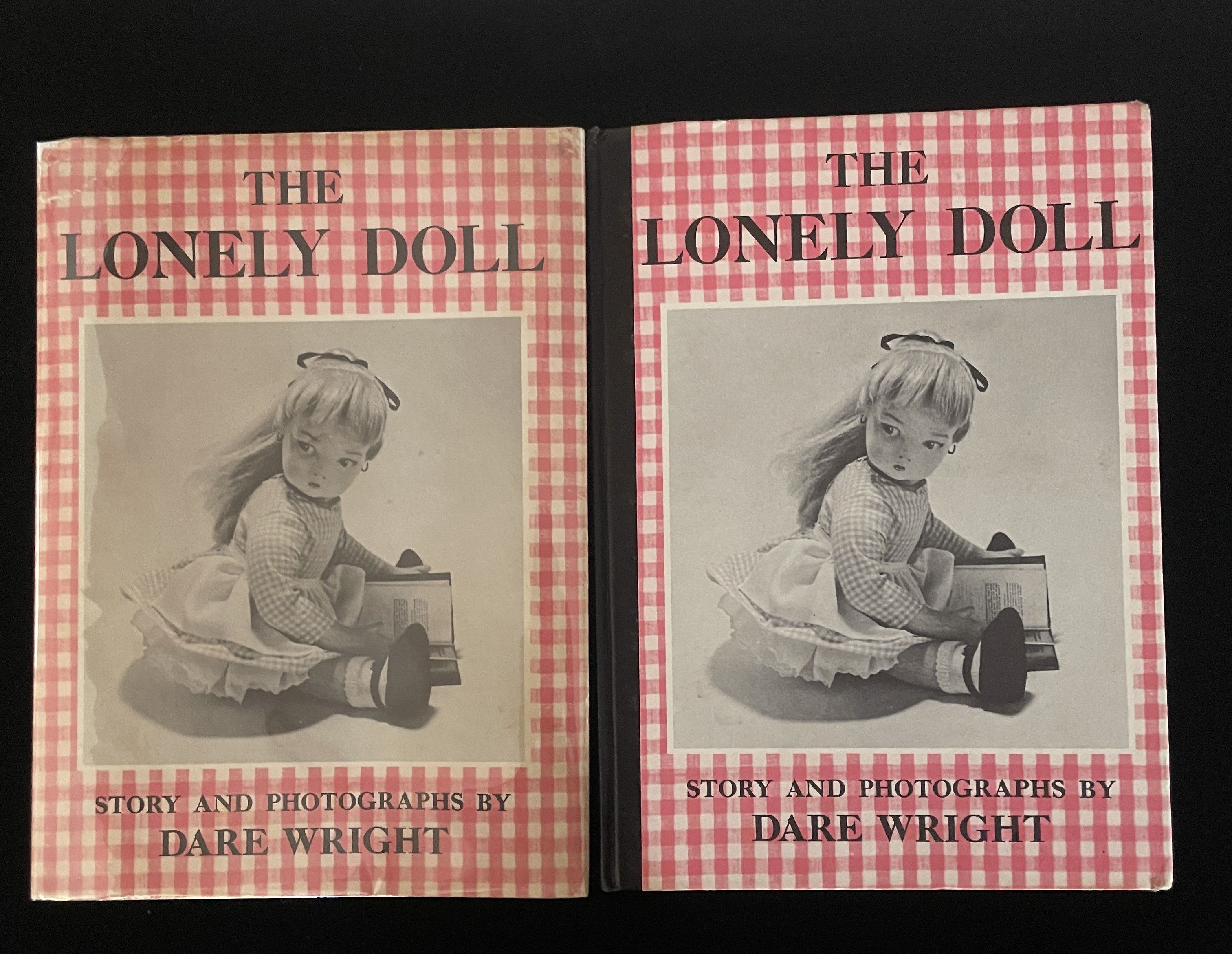 First edition, early printing,with 1957 date both on copyright and title page of the first title in The Lonely Doll series. Dare Wright's, arguably "offbeat" take on girlhood; even with "modern" sensibilities well-advanced from the 1950s when Dare created the characters and story of Edith and her Teddy Bears, some now perhaps regard it as "edgy". A very nice copy in price-clipped pictorial dustjacket front and back that replicates the covers of the book. With a young girl's bookplate on the pastedown.