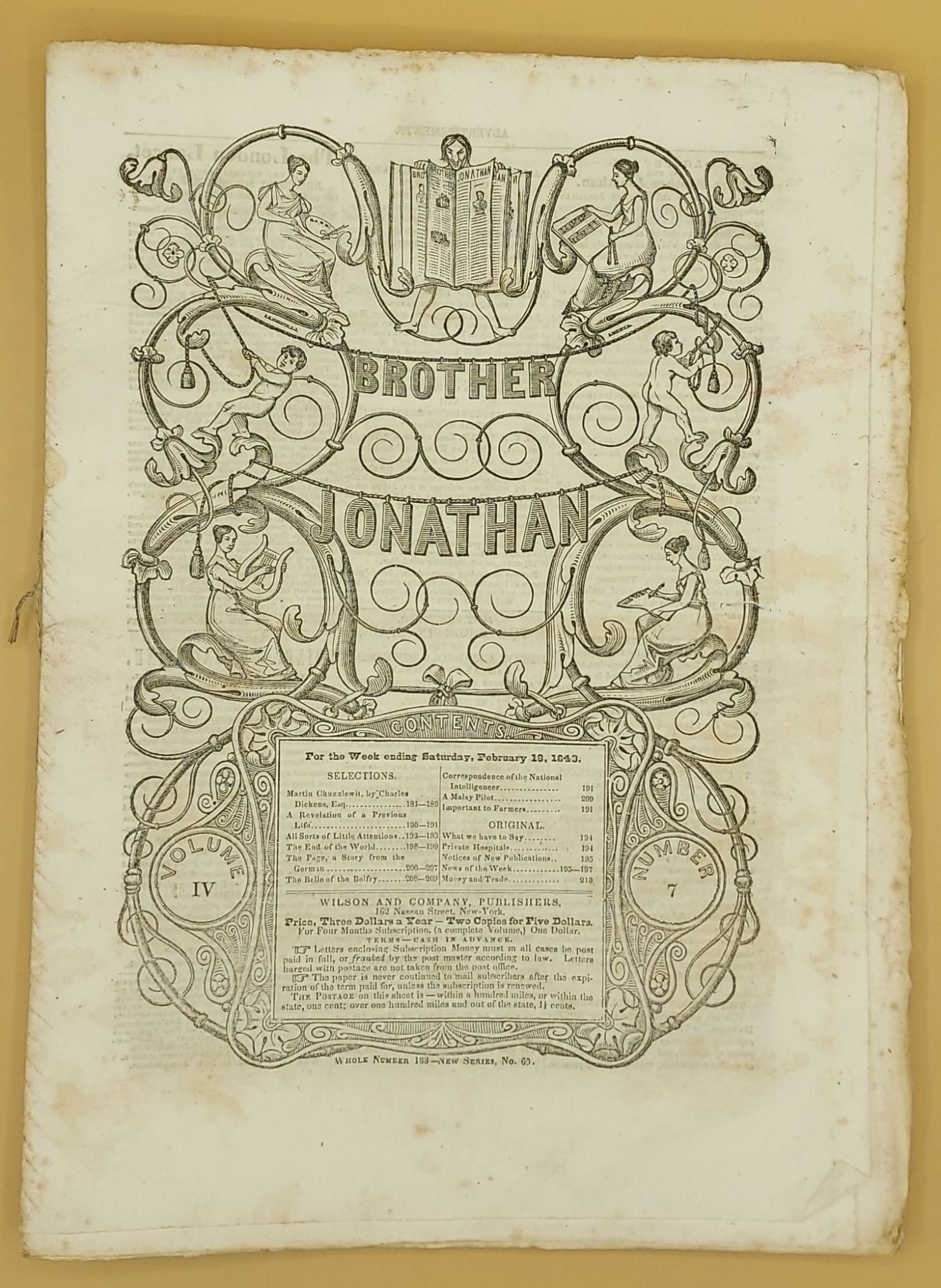 Brother Jonathan. For the Week Ending Saturday, February 18, 1843. With the first few chapters of "Martin Chuzzlewit.