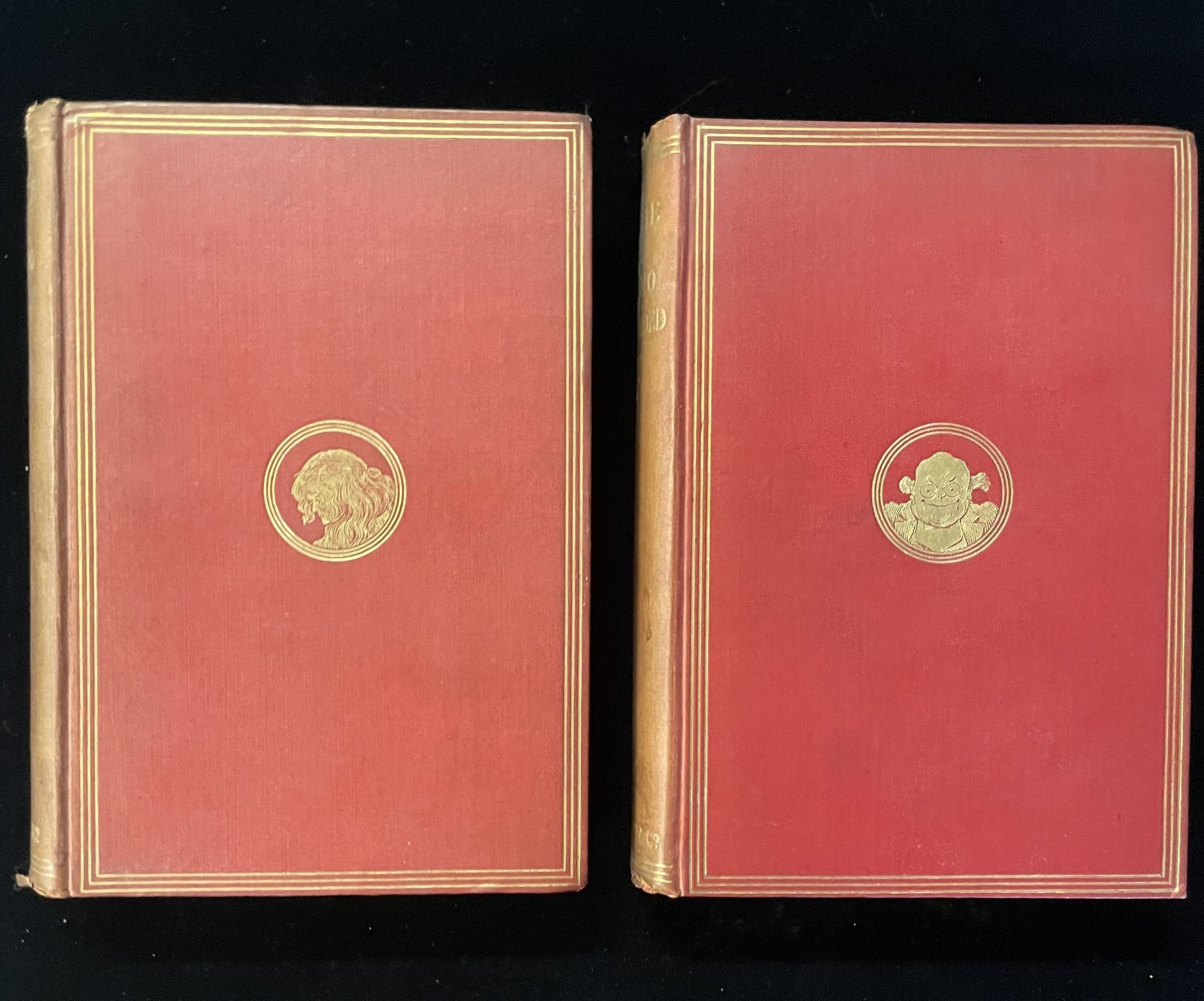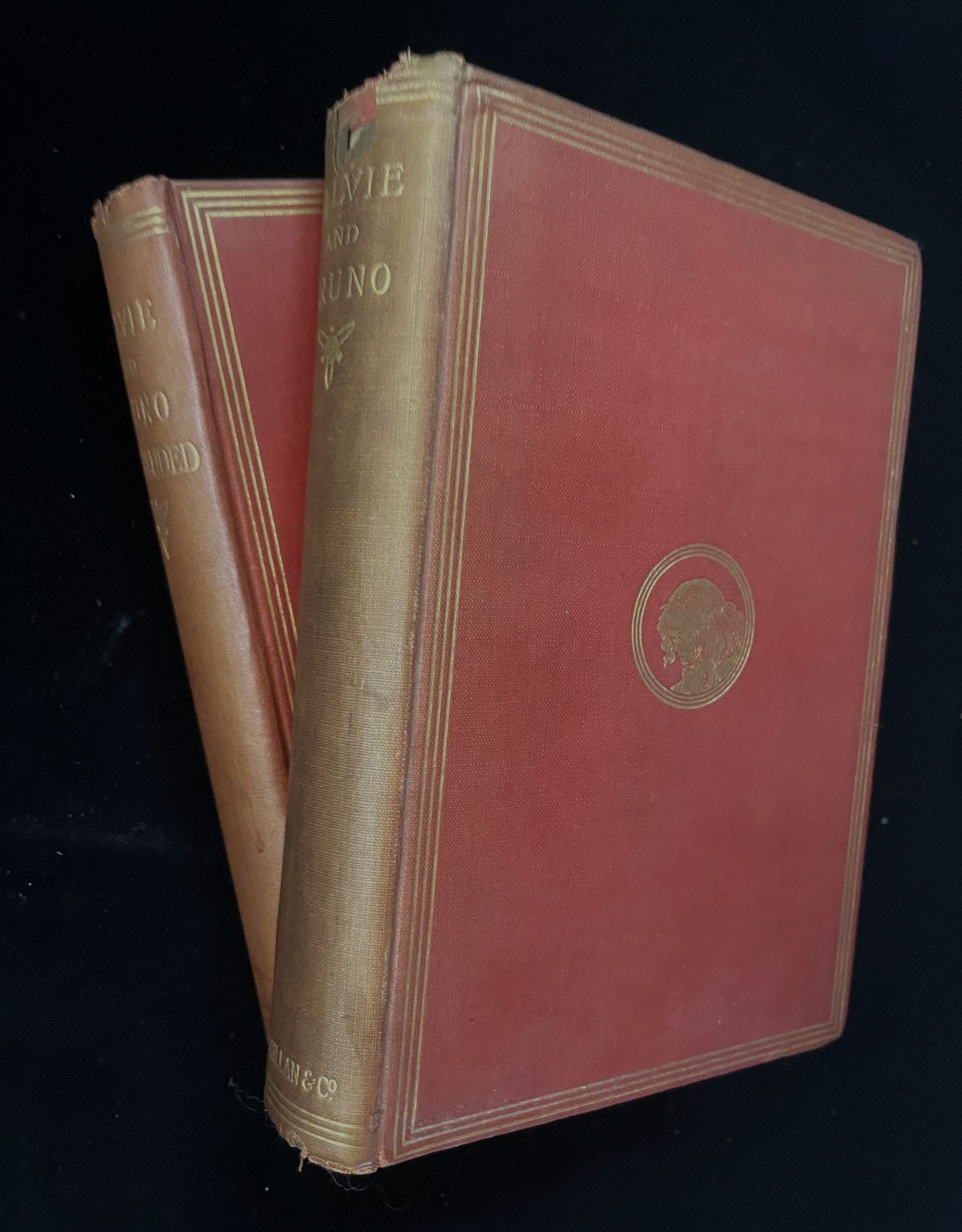 London: Macmillan, 1893. 1st Edition. Hardcover. Very Good. A solid pair of fist editions, in uniform bindings of Sylvie and Bruno (18930 and its sequel Sylvie and Bruno Concluded (1893). original salmon red linen covers with figures centered and triple ruled both front and back; gilt spine titles, aeg. Spines moderately soiled and the first book has lost some cloth at top of spine. Solid bindings. Internal quite good. No names or bookplates. Original bookseller ticket of D. B. Friend, 77 Western Road, Brighton in upper corner front pastedown first book.