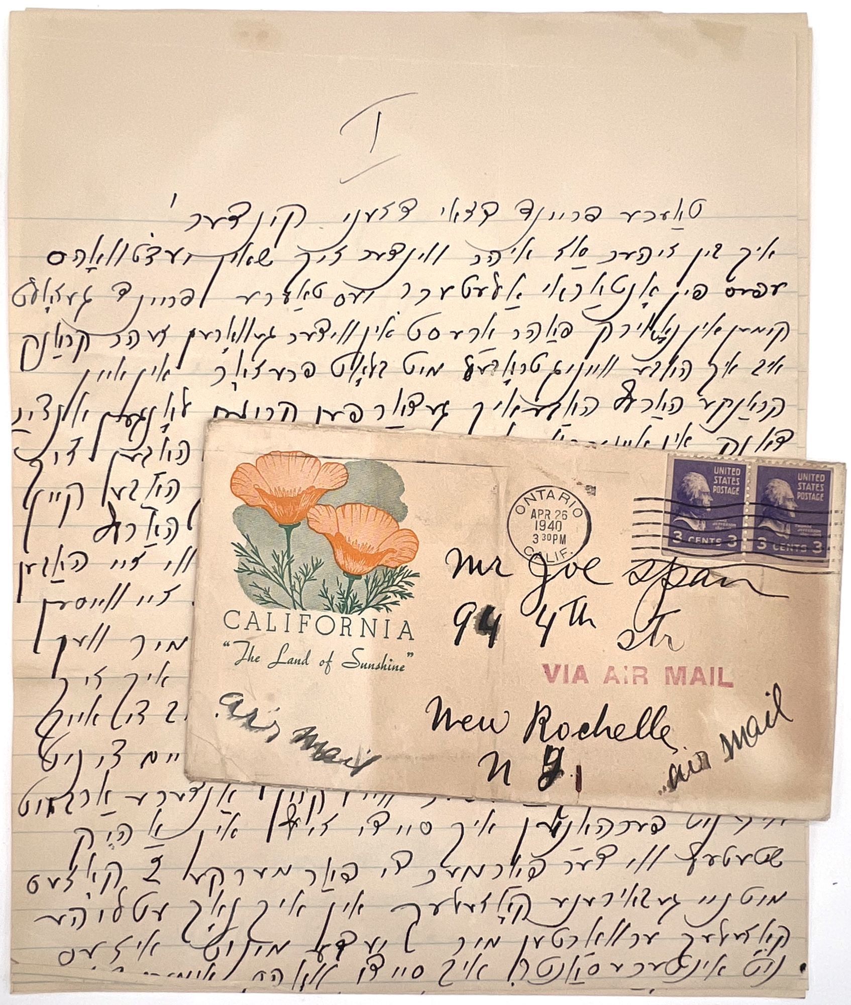 Handwritten letter postmarked April 26, 1940, with original envelope. Letter measures approx. 10" by 7.5".