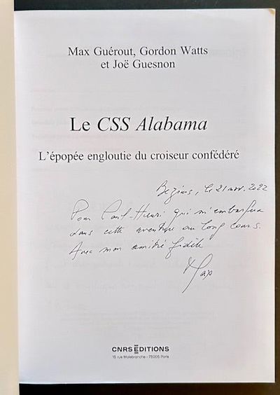 Paris: CNRS Editions, 2022. Pictorial wrappers. Fine. WARMLY INSCRIBED BY THE AUTHOR MAX GEROUT on the title page. An all-but-immaculate copy to boot of the 2022 1st edition. Clean and Fine in its pictorial wrappers. Quarto, hundreds of crisp color and black-and-white photos throughout, in addition to dozens of diagrams and charts. The epic tale of finding the sunken Confederate cruiser the CSS Alabama.