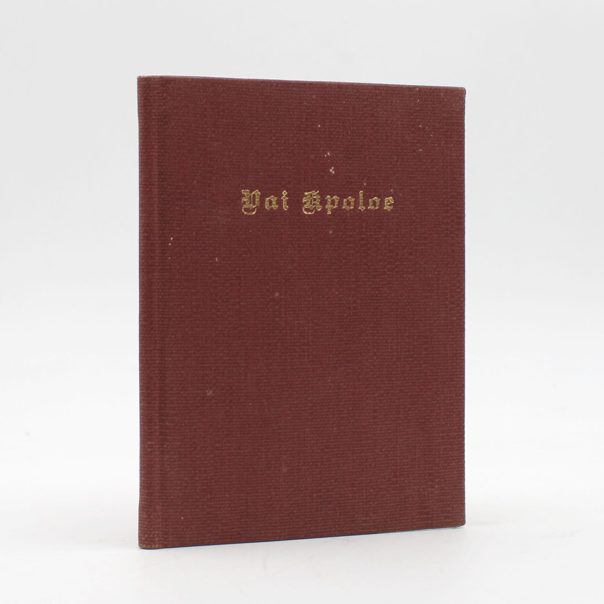 [New York City: De Pamphilis Press, 1944. First edition, variant issue in reddish-brown cloth [also seen in blue cloth]. [ii], 33 pp. 1 vols. 24mo. Reddish-brown cloth, a.e.g, glassine wrapper. Near fine. First edition, variant issue in reddish-brown cloth [also seen in blue cloth]. [ii], 33 pp. 1 vols. 24mo. The Vai langage is a Mande language of west Africa, used in Liberia and Sierra Leone.