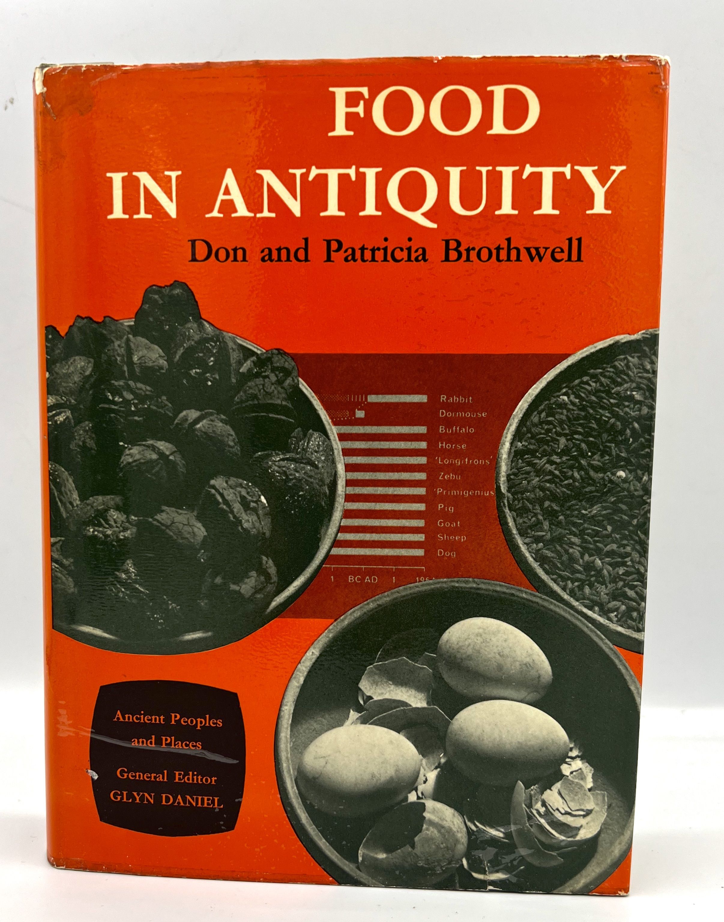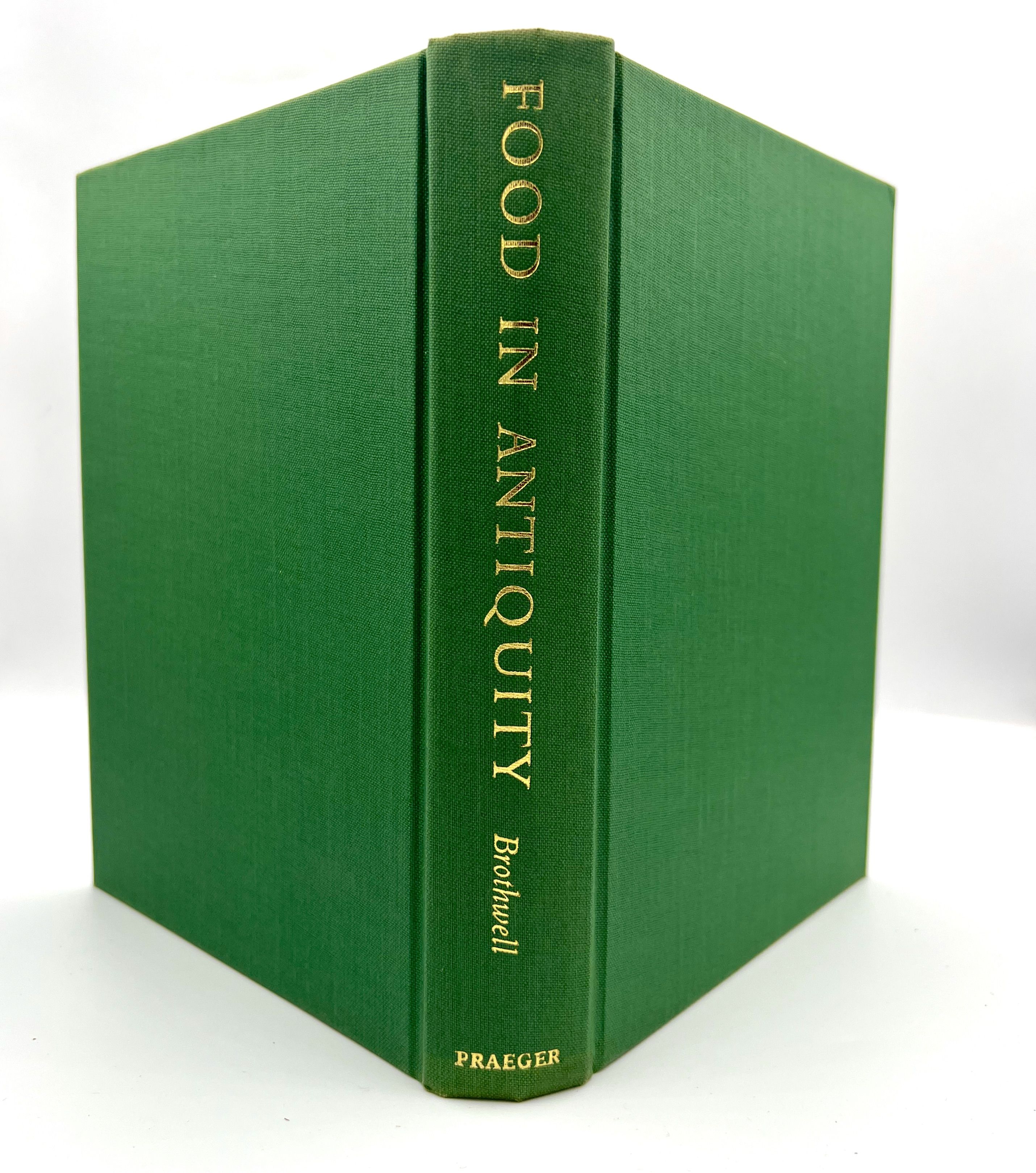 New York: Frederick A. Praeger, 1969. Hardcover. Green cloth covered boards. Near fine, in good dust wrapper. 248 pages. 21 x 15.5 cm. Food in Antiquity is an interdisciplinary exploration of ancient diets, using archaeological, anthropological, and environmental evidence to understand how early humans subsisted. This comprehensive book covers a wide historical range, from prehistoric times to the classical periods of Greece and Rome, examining how different cultures around the world sourced, prepared, and consumed their food. The Brothwells analyze human skeletal remains, teeth, and other physical evidence to deduce diet patterns. These clues offer insights into what early humans ate, how their food was processed, and what nutritional challenges they faced. Fossilized plant remains and animal bones also contribute to their reconstruction of ancient diets. Illustrated throughout. Interior and boards clean. Dust wrapper rubbed at the edges. In protective mylar cover.