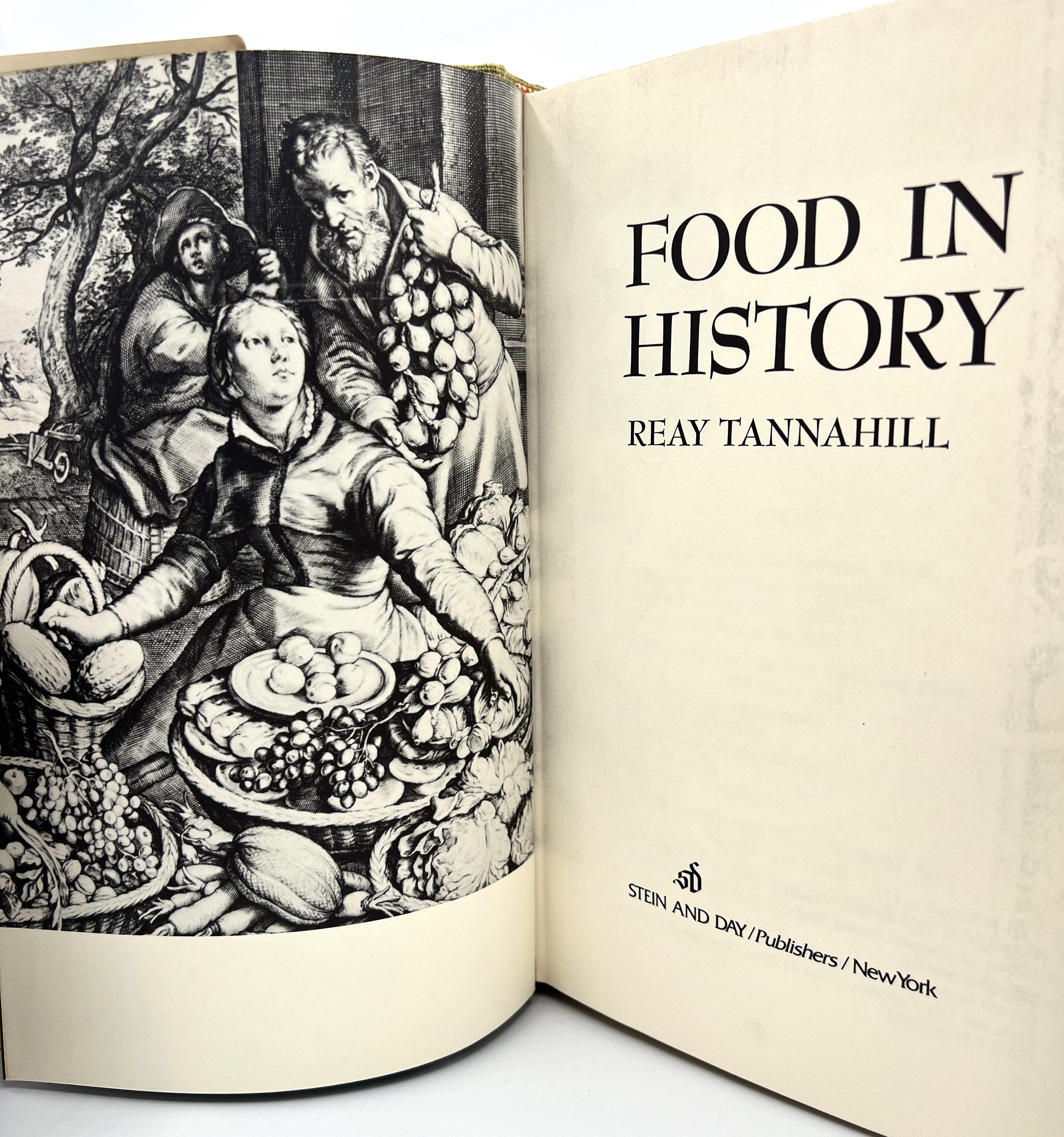 New York: STEIN AND DAY, 1973. Hardcover. Red cloth covered boards, green cloth spine. Near fine, in near fine dust wrapper. 448 pages. 24 x 16 cm. Food in History by Reay Tannahill is a comprehensive exploration of the development of food and its impact on human civilization from prehistoric times to the modern era. Tannahill's work covers how food has shaped societies, economies, politics, and cultures across millennia.Illustrated throughout. Interior and boards pristine. In protective mylar cover.