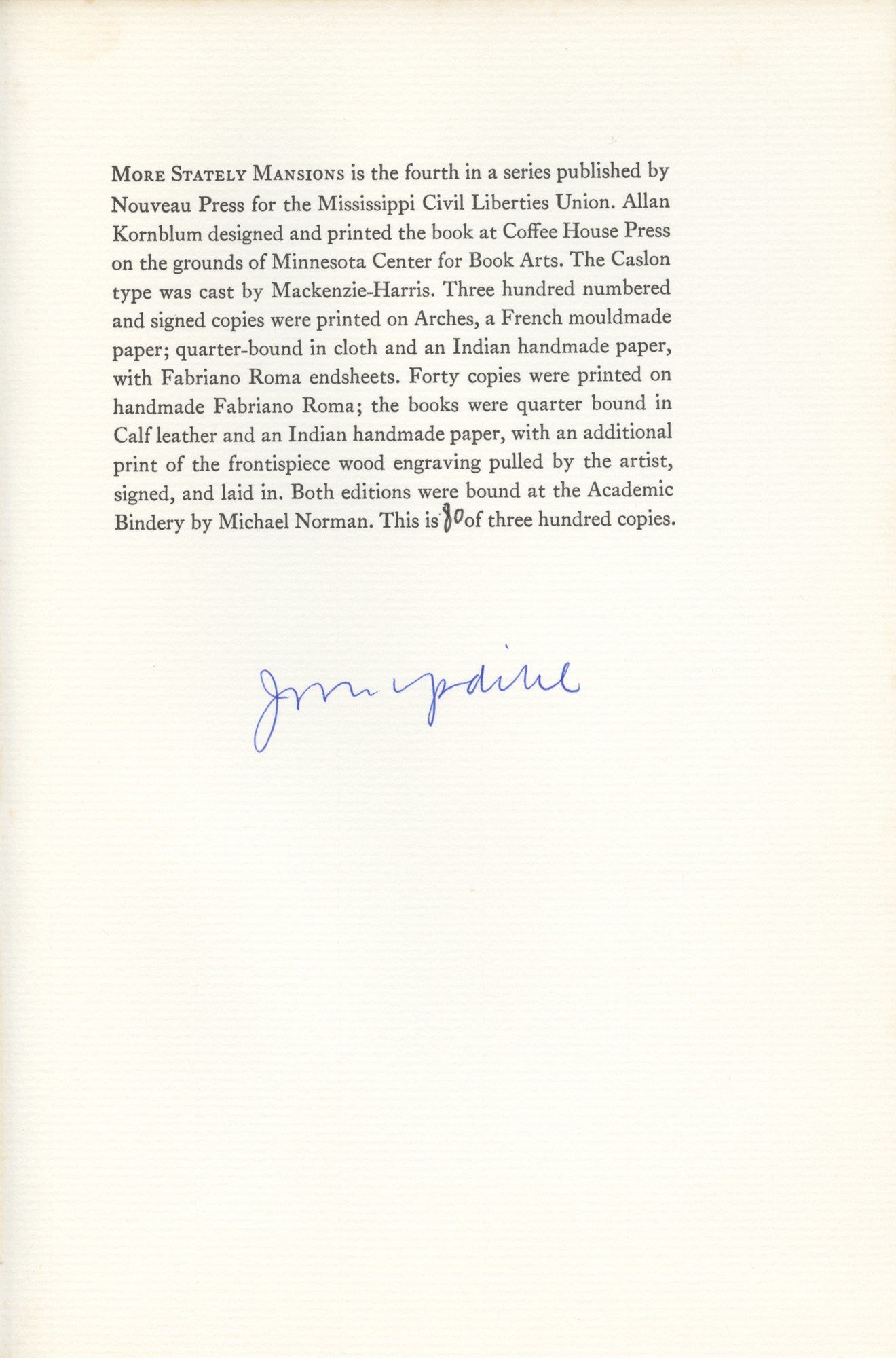 Jackson: Nouveau Press for Mississippi Civil Liberties Union, 1987. Limited Edition, one of 300 copies (this being No. 80), SIGNED and numbered by the author on the limitation page.