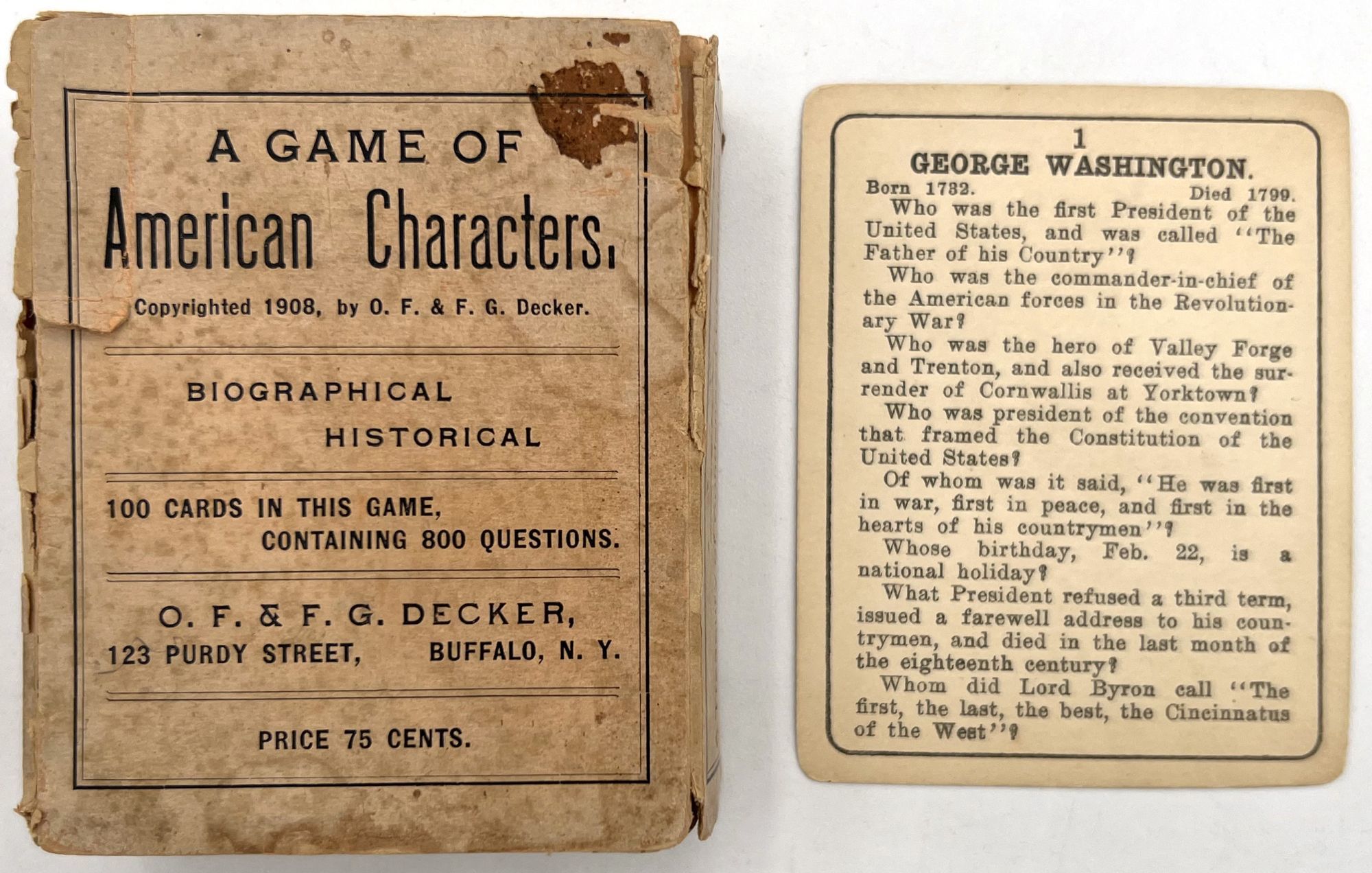 A Game of American Characters" -- 1908 Patriotic Classroom Trivia Card Game