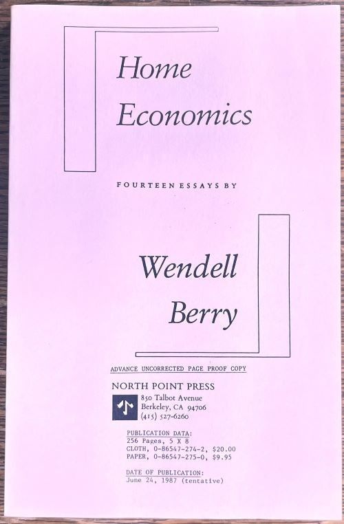 San Francisco: North Point Press, 1987. First edition / Advance uncorrected page proof. Paperback. Very Good +. 192pp. Octavo [21 cm] Pink printed wrappers. Mild fading and soiling to extremities. Signed by the author in black ink on the title page.