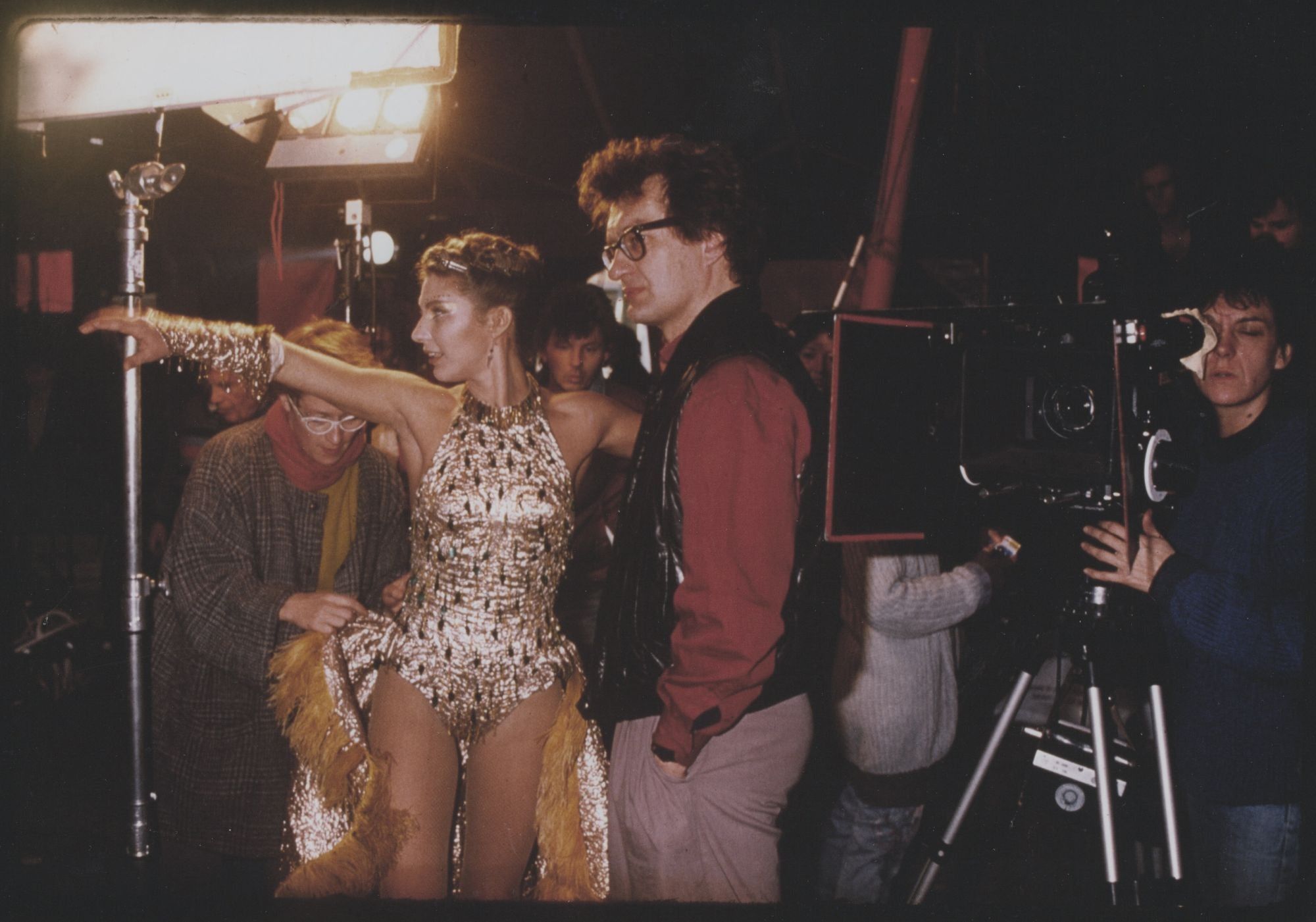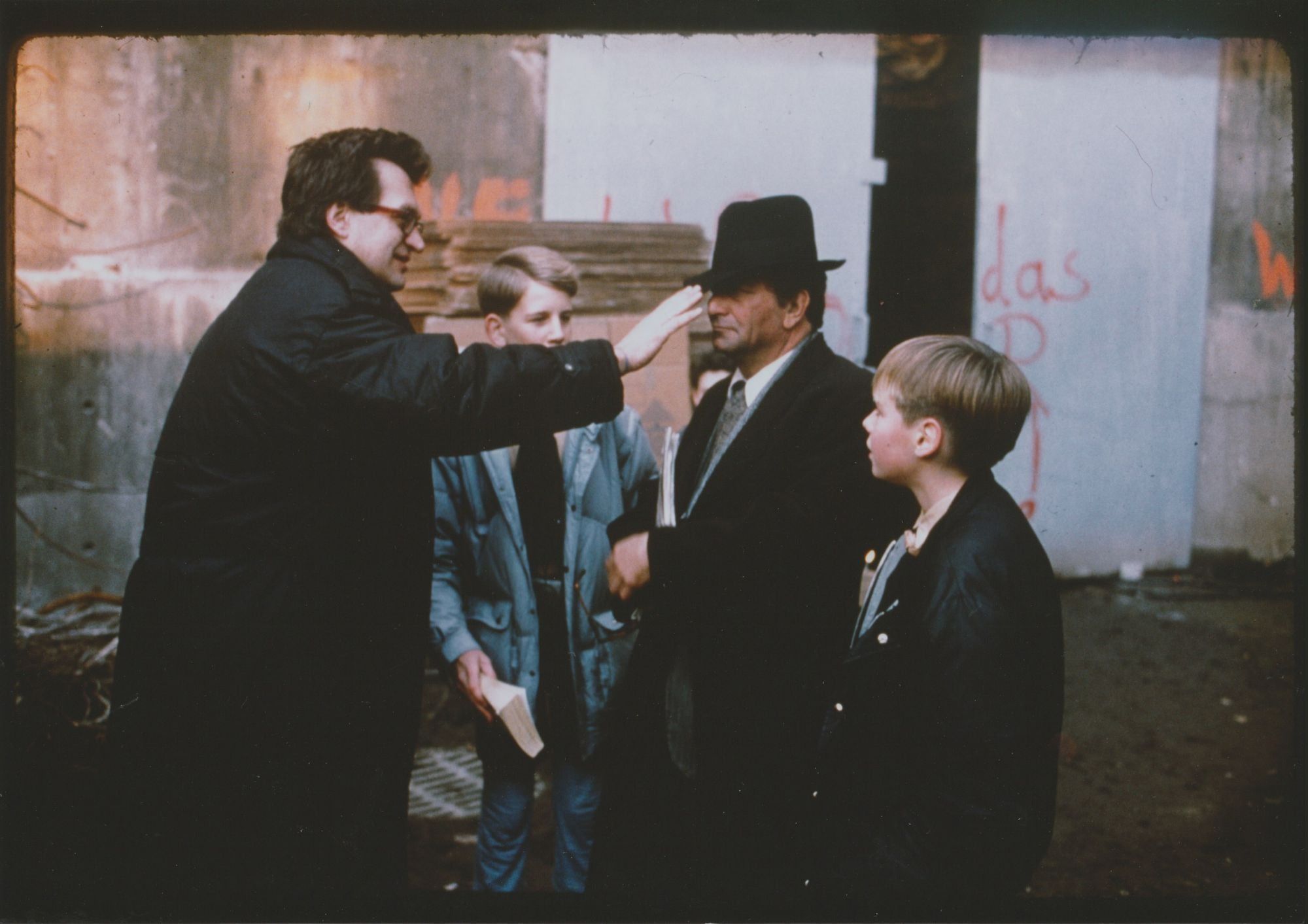 N.p.: N.p., 1987. Two vintage borderless oversize color reference photographs from the 1987 film, both showing director Wim Wenders on the set.