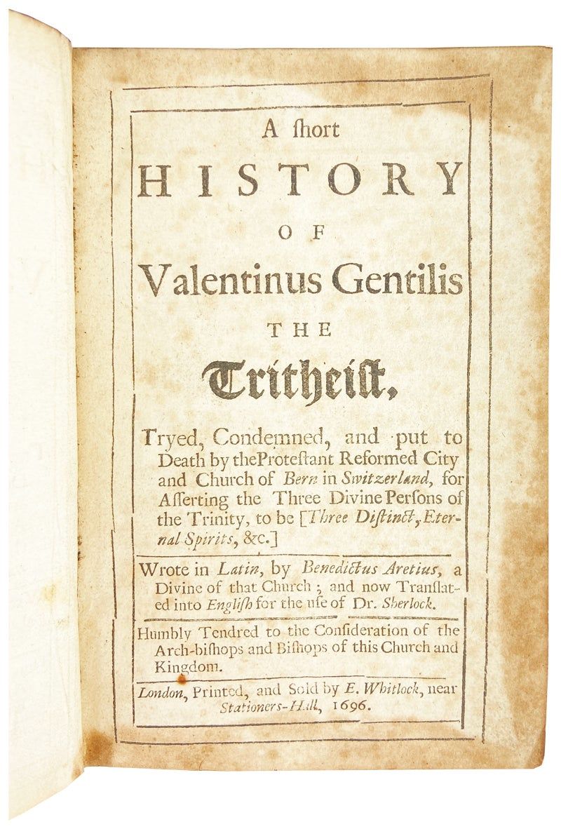 A Short History of Valentinus Gentilis the Tritheist, Tryed, Condemned, and put to Death by the Protestant Reformed City and Church of Bern in Switzerland, for Asserting the Three Divine Persons of the Trinity, to be [Three Distinct, Eternal Spirits, &c.]