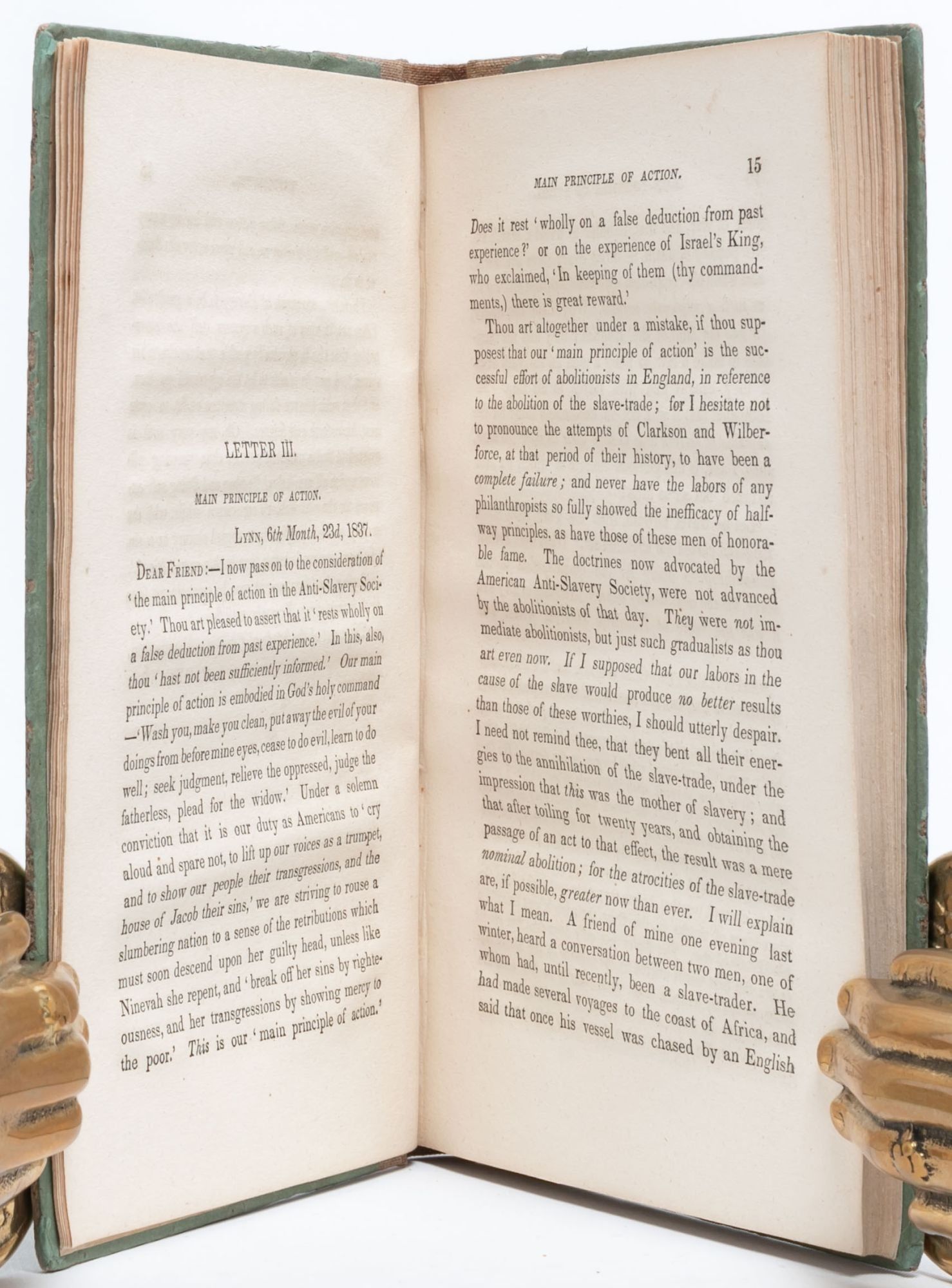 An activist for universal human rights, Angelina Grimké was one of the only white Southern women to fight simultaneously for abolition and women’s equality. Having witnessed first hand the savage injustices of racism and sexism in South Carolina, she moved to the North in her adulthood and dedicated her life to advancing equality. Letters to Catherine Beecher became her most famous work, as it arose out of the debate regarding women’s place within the abolition movement. In direct response to Beecher’s argument that women’s naturally subordinate role should prohibit their public activism, Grimké published a text that laid critical groundwork for the intersectional feminism of today. “In the preamble of that instrument [the U.S. Constitution] the great objects for which it was framed are declared to be ‘to establish justice, to promote the general welfare, and to secure the blessings of liberty to us and to our posterity.’ The slave laws are violations of these fundamental principles…I have found the Anti Slavery cause to be the high school of morals in our land—the school in which human rights are more fully investigated, and better understood and taught, than in any other....Human beings have rights, because they are moral beings: the rights of all men grow out of their moral nature; and as all men have the same moral nature, they have essentially the same rights. These rights may be wrested from the slave, but they cannot be alienated.... Now if rights are founded in the nature of our moral being, then the mere circumstances of sex does not give to man higher rights and responsibilities, than to women.... To suppose that it does, would be to break up utterly the relations, of the two natures...exalting the animal nature into a monarch, and humbling the moral into a slave.” For Grimké and the racially diverse group of Northern abolitionist men and women with whom she worked, the oppression of African Americans and of women were critically linked, and justice could only occur when both groups were recognized as fully human under the law.