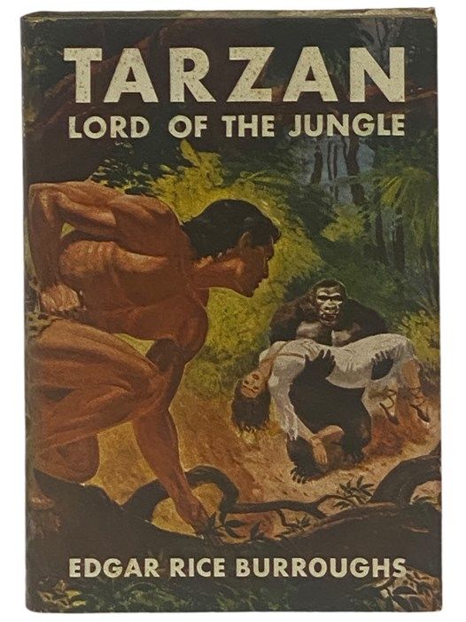 New York: Grosset & Dunlap, 1928. Reissue. Hard Cover. Very Good/Good. 0x0x0. Palacios, Rafael. 1948 printing (Heins LJ-9; Lukes LJ-TBBGS-1 in jacket variant 1b). Very good in good jacket. Jacket foxed (mostly to reverse), ink owner stamp on front endpaper. 1928 Hard Cover. 309 pp. Green cloth, dark green titles, Rafael Palacios cover art, endpaper maps, and title page illustration. The thirteenth in the Tarzan series, originally serialized in Blue Book Magazine from 1927-28. "Battling Arab slavers, Tarzan and an American discover two lost cities of 12th century knights.