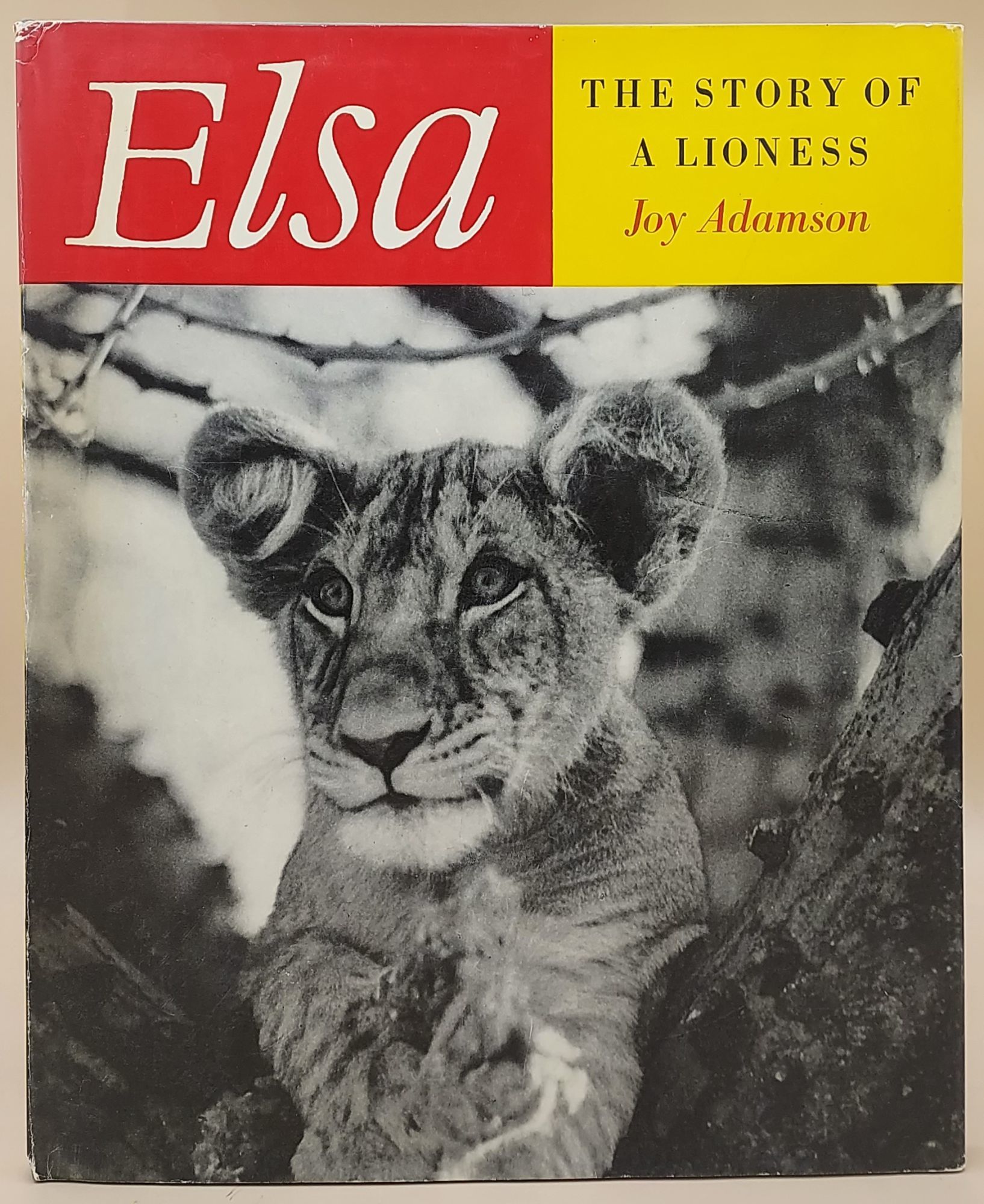 New York: Pantheon Books, 1961. First edition. Hardcover. Very Good/Very Good. Slim quarto [29 cm] Forest green paper over boards with a black ink stamped vignette of a lion cub in a tire on the front board. The spine is slightly rolled back. In a very sharp dust jacket, with minor rubbing to the edges, and two shallow tears (one open and one closed) along the bottom edge. The story of Elsa, the Kenya lioness. Brings together many of the pictures that were not included in Adamson's earlier work "Born Free."