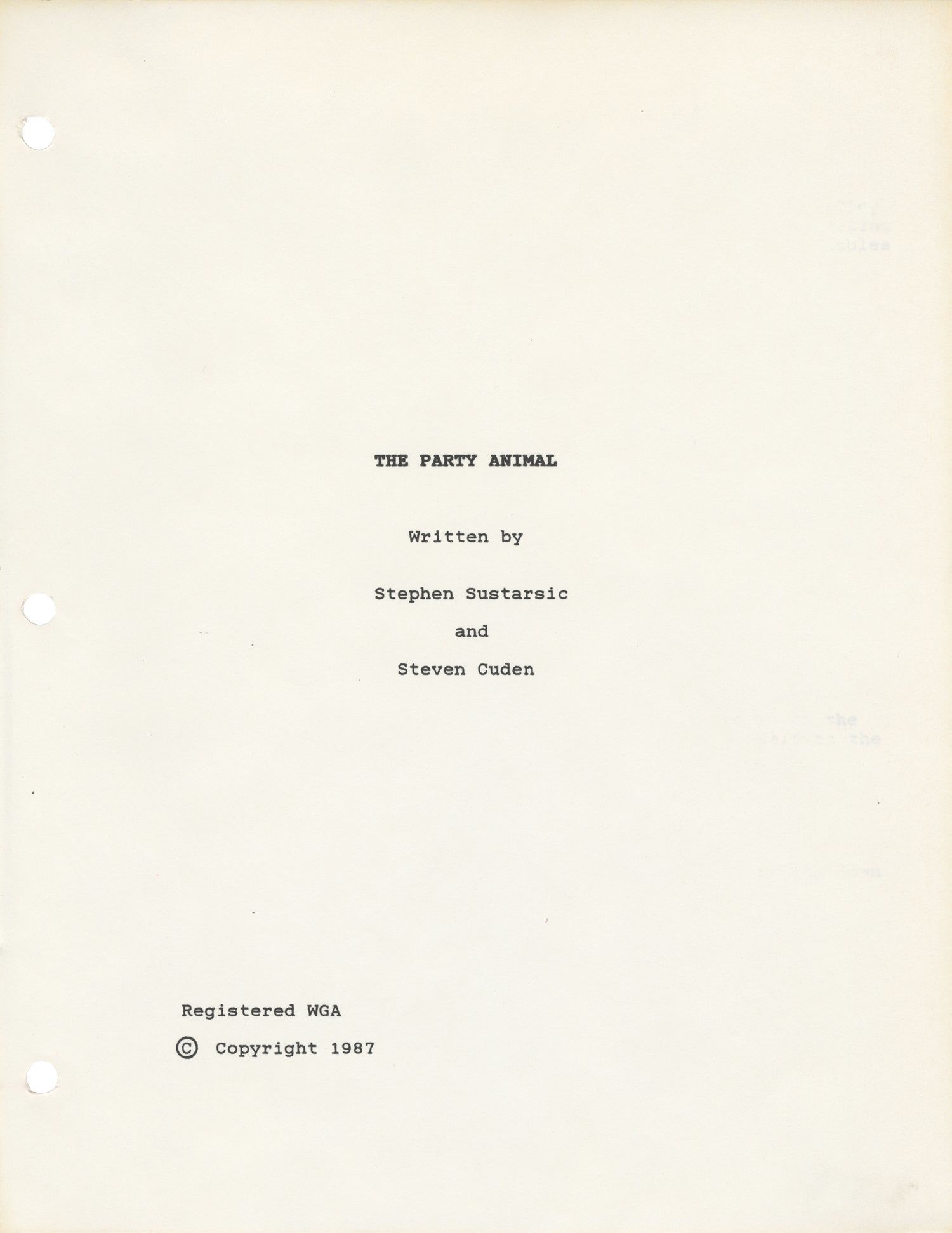 Red titled wrappers. Title page present, dated 1987, with credits for screenwriters Stephen Sustarsic and Steven Cuden. 115 leaves, with last page of text numbered 114. Xerographic duplication, rectos only. Pages Near Fine, wrapper Near Fine.