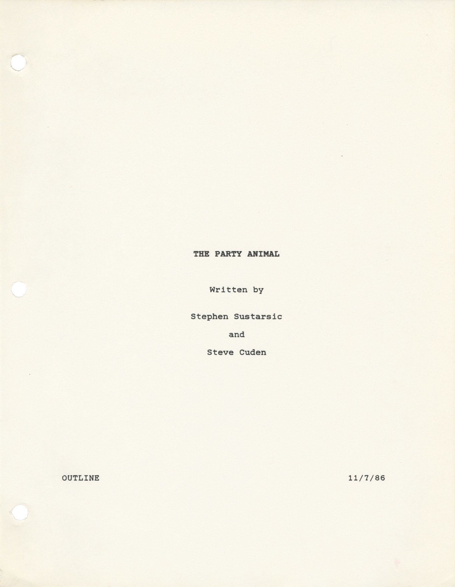 Title page present, dated 11/7/86, noted as OUUTLINE, with credits for screenwriters Stephen Sustarsic and Steve Cuden. 41 leaves, with last page of text numbered 40. Xerographic duplication, rectos only. Pages Near Fine.