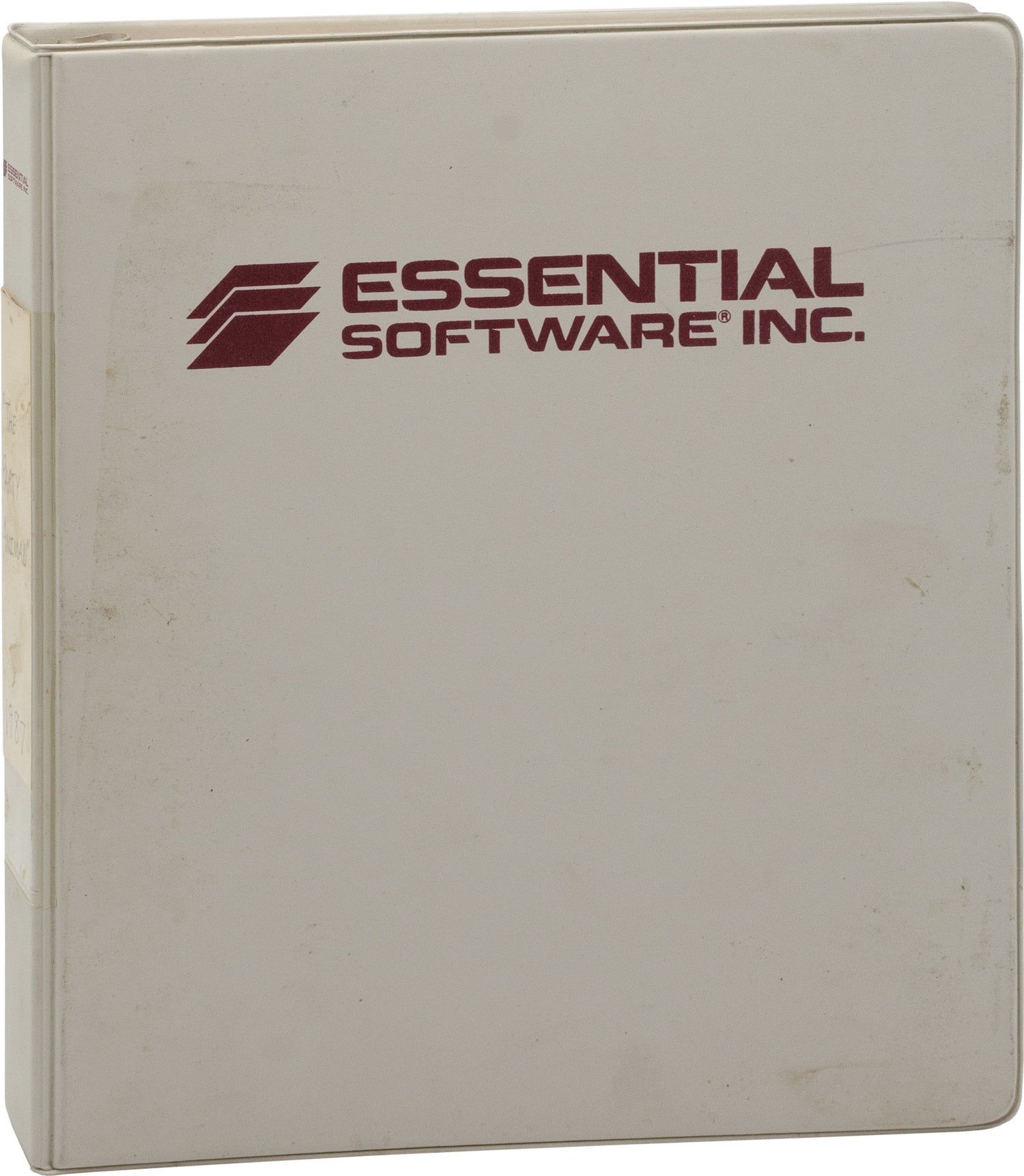 N.p.: N.p., 1987. Two scripts for an unproduced film, a 40 page "Outline" treatment script, dated 11/7/86, and a 1987 Draft script, housed in a generic "Essential Softwar Inc." three-ring binder.
