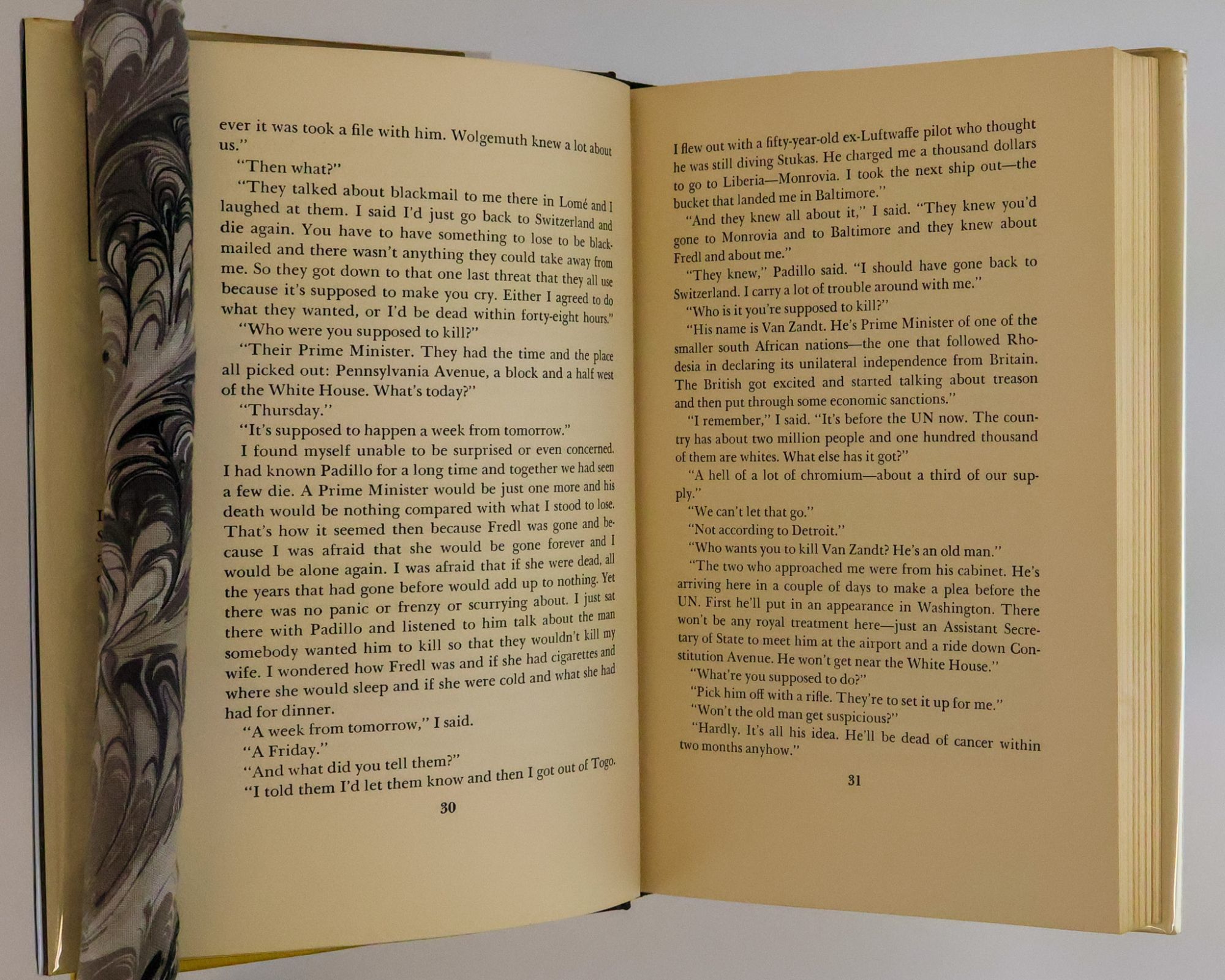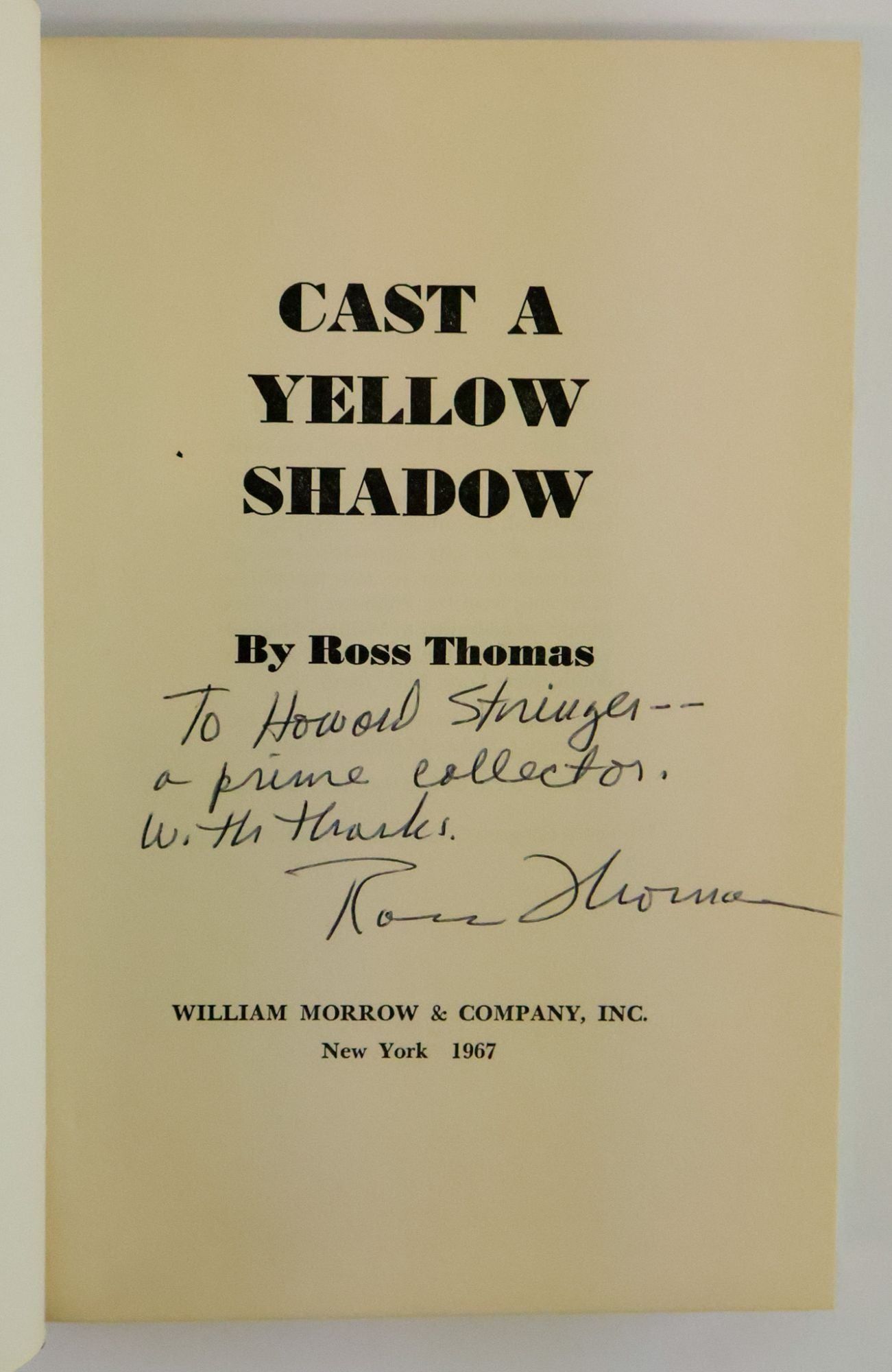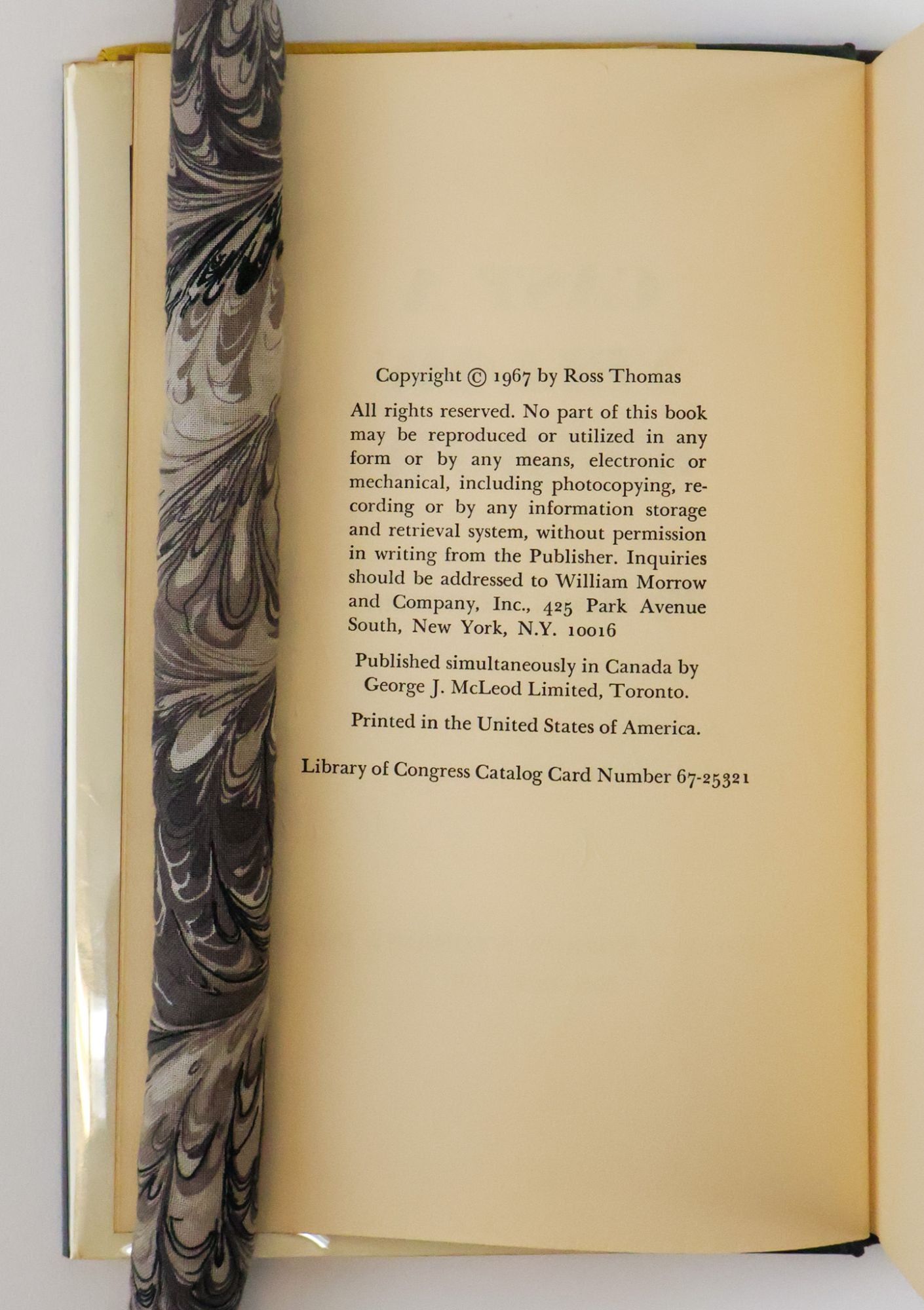 Ross Thomas' service as a solder of the American Army in the Philippines during WWII and Public Relations Director in the United States, Europe, and Africa has allowed him to provide an inside scoop on the the injustices behind campaigns and authorities that exploit marginalized countries. This first edition copy is signed by Ross Thomas himself. 1387356. Special Collections.
