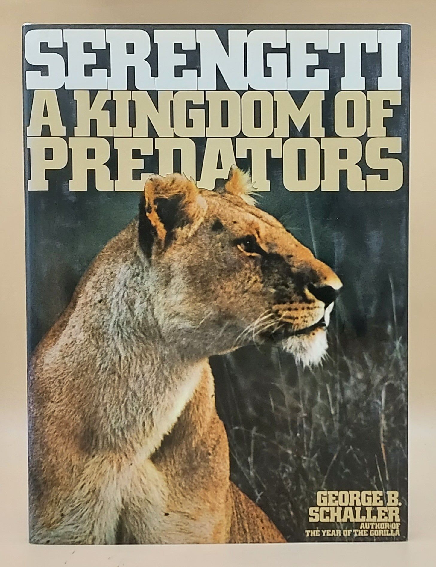 New York: Alfred A. Knopf, 1972. First American edition. Hardcover. Very Good/Very Good. 114pp. Quarto [30 cm] Thickly woven beige cloth over boards. Bookseller's ticket on the front pastedown. In the dust jacket, with a 3" scratch to the front panel, and general light rubbing to the rear panel. Illustrated with the author's own spectacular photographs. Schaller broke new ground when he stalked, lived with, photographed, and studied the lion, cheetah, leopard, hyena, and wild dog. He also made new discoveries about the predators' main quarries, including the wildebeest and zebra- the "prey species" that are a fundamental part of the natural community.