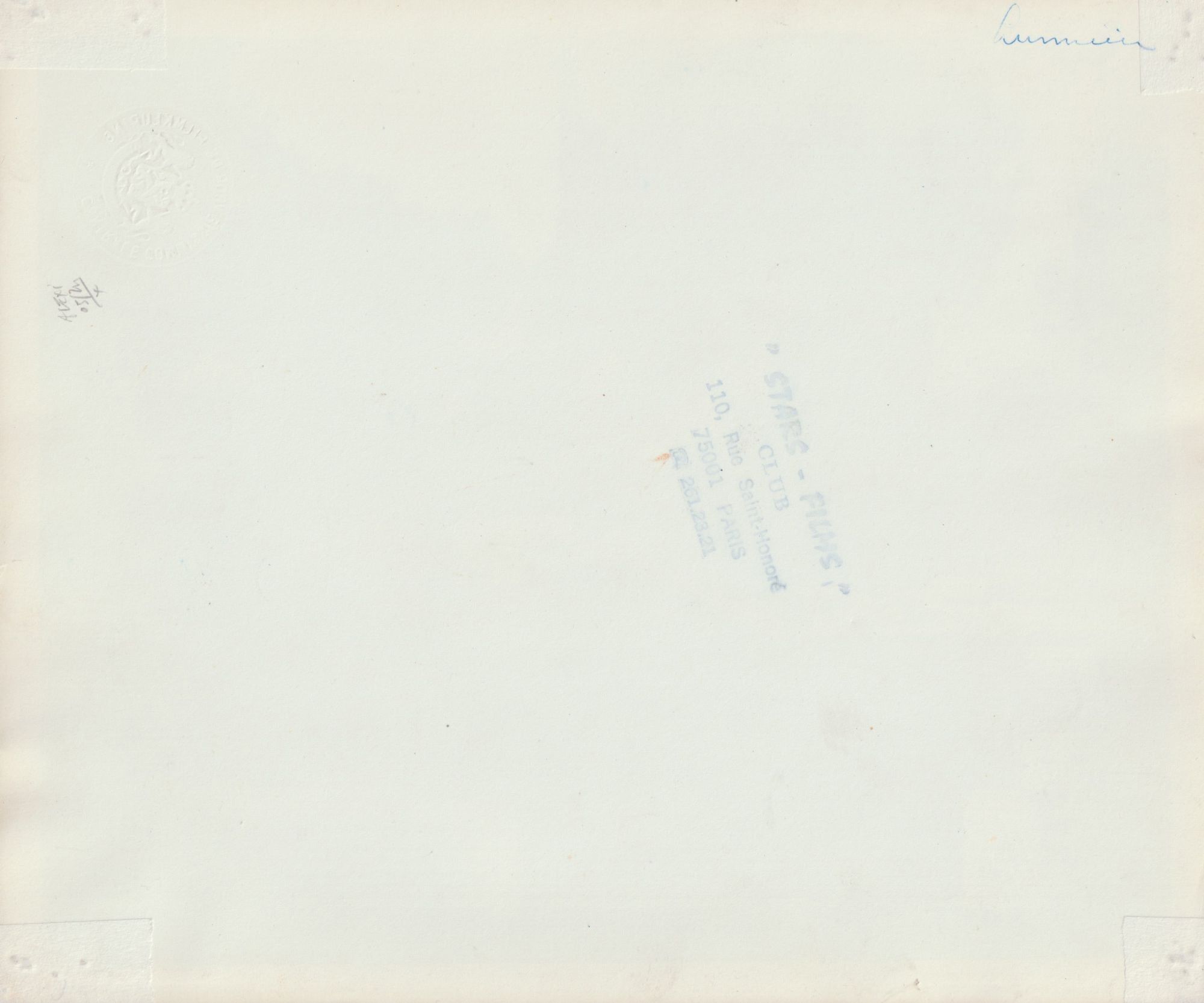 N.p.: N.p., 1956. Vintage reference photograph from the 1956 Italian film, showing actress Sophia Loren raising her skirt to examine her tights. French provenance stamp on the verso.