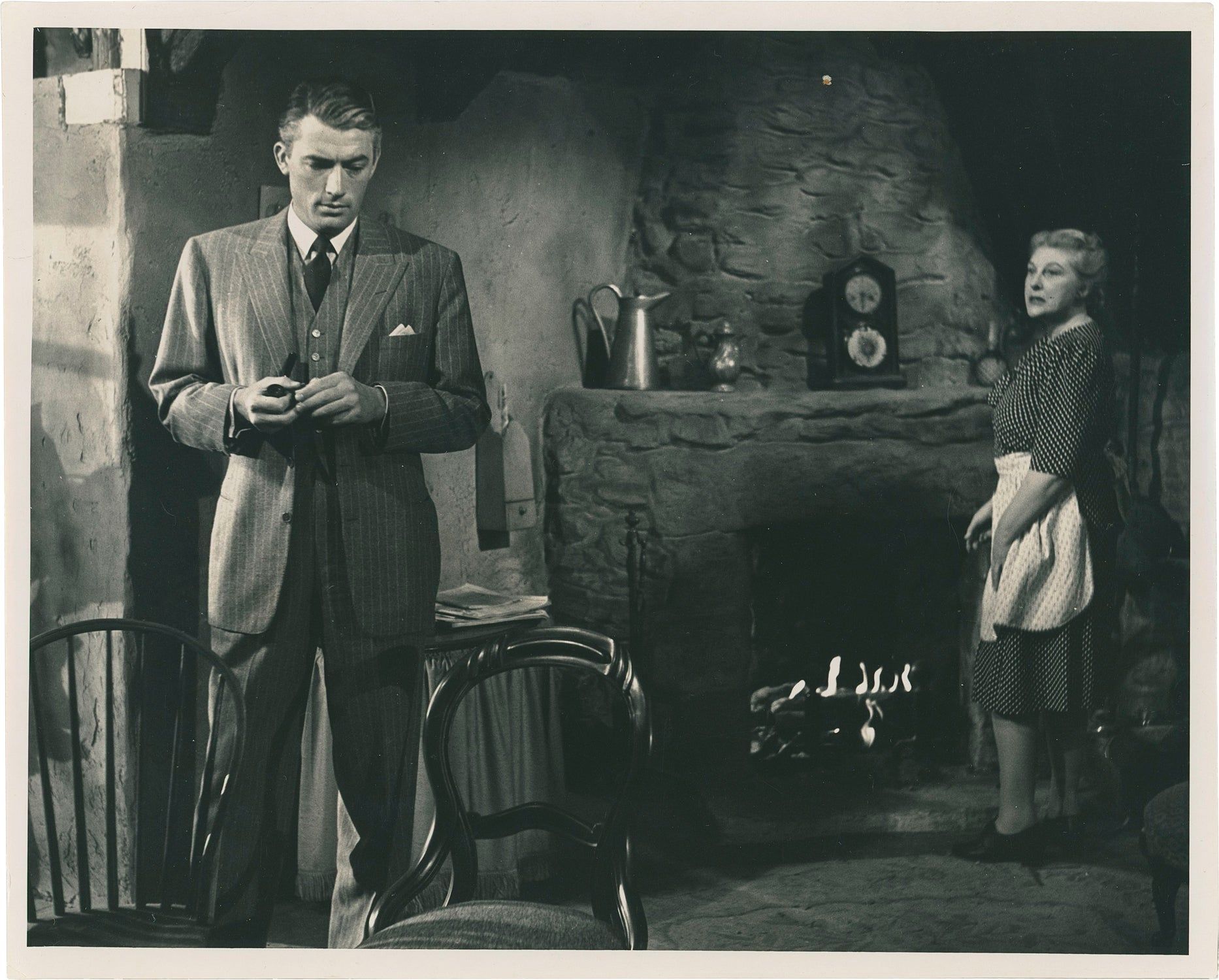 Los Angeles: Selznick International, 1947. Vintage reference photograph from the 1947 film, showing actors Gregory Peck and Isobel Elson. Printed mimeo snipe affixed to the verso.