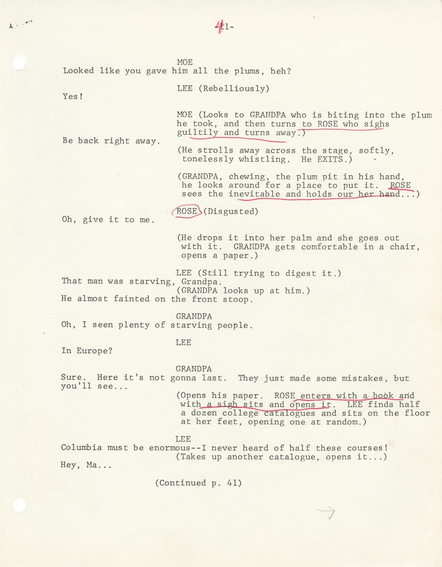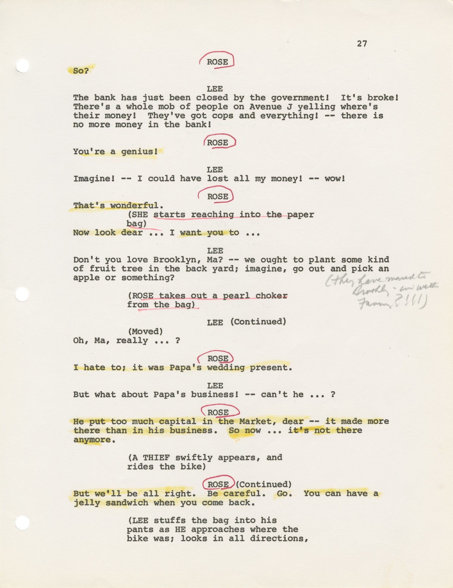 New York: Biltmore Theatre, 1980. Draft script for the 1980 play. Copy belonging to actress Tresa Hughes, with her annotations throughout.