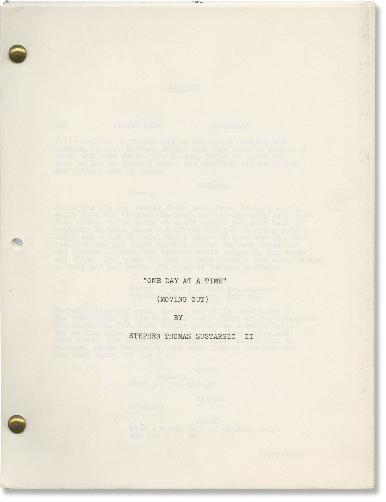 One Day at a Time: Moving Out (Original screenplay for an unproduced episode of the television show)