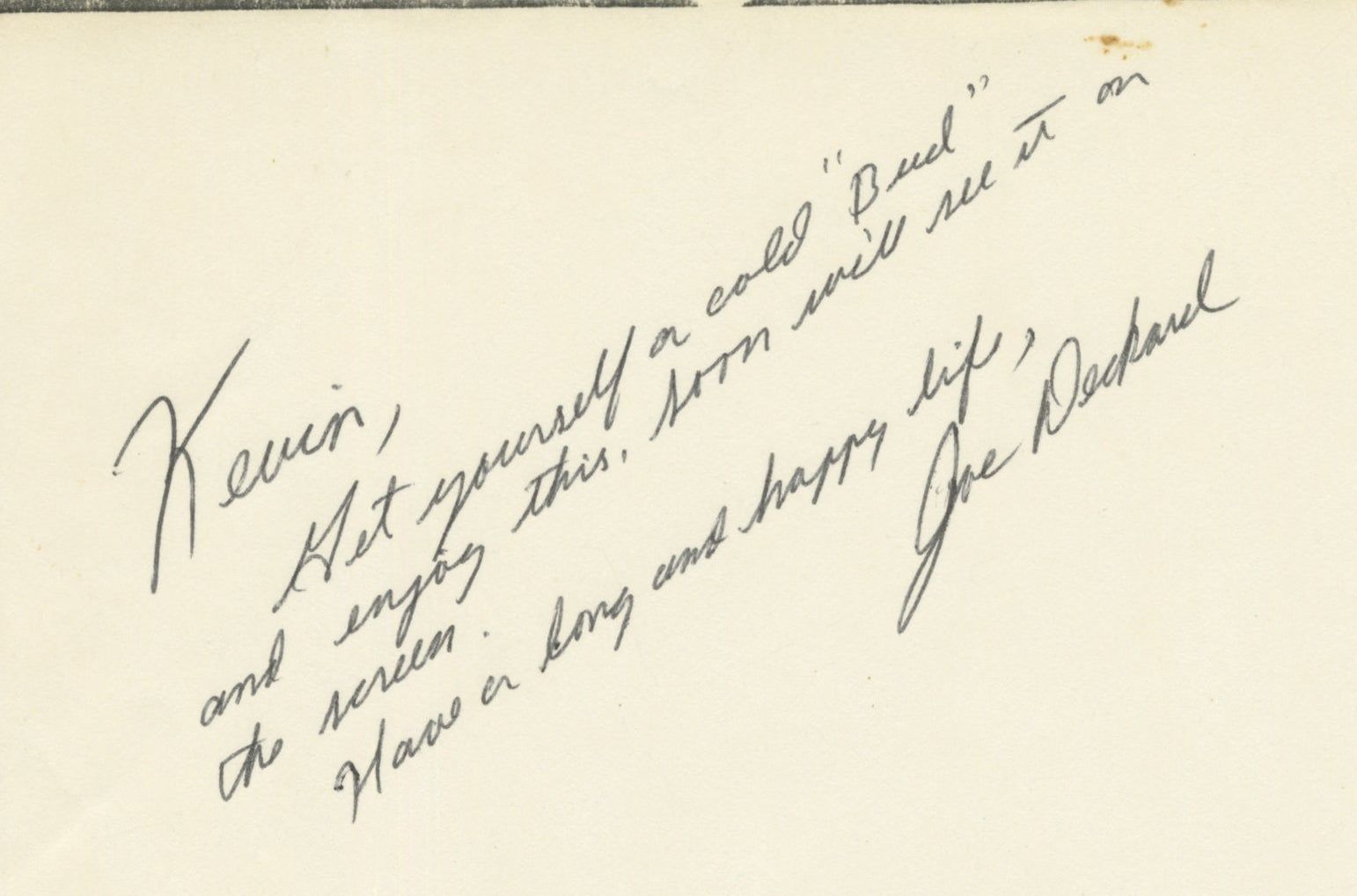 N.p.: N.p., 1998. First Draft script for an unproduced film based on the life of Ivan "Joe" Deckard, a mobster serving a 50-year prison sentence for drug smuggling and other illegal activities. INSCRIBED by Deckard on the title page: "Kevin / Get yourself a cold 'Bud' and enjoy this. Soon we'll see it on the screen / Have a long and happy life / Joe Deckard."