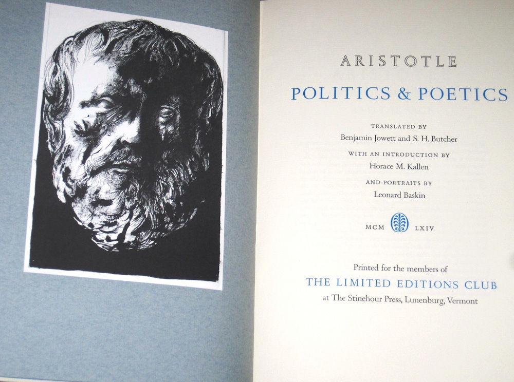 Lunenburg, VT: Limited Editions Club, 1964. Hardcover. Spine sunned. Near Fine in a Fine slipcase. Leonard Baskin. Quarto (7-7/8" x 10-3/4") bound in cream buckram with blue cloth belt, stamped in gold. Designed by Roderick Stinehour and printed at the Stinehour Press. Illustrated with 20 portraits drawn by Leonard Baskin and printed at Meriden Gravure. Copy #1213 of 1500 SIGNED by the artist on the colophon page.