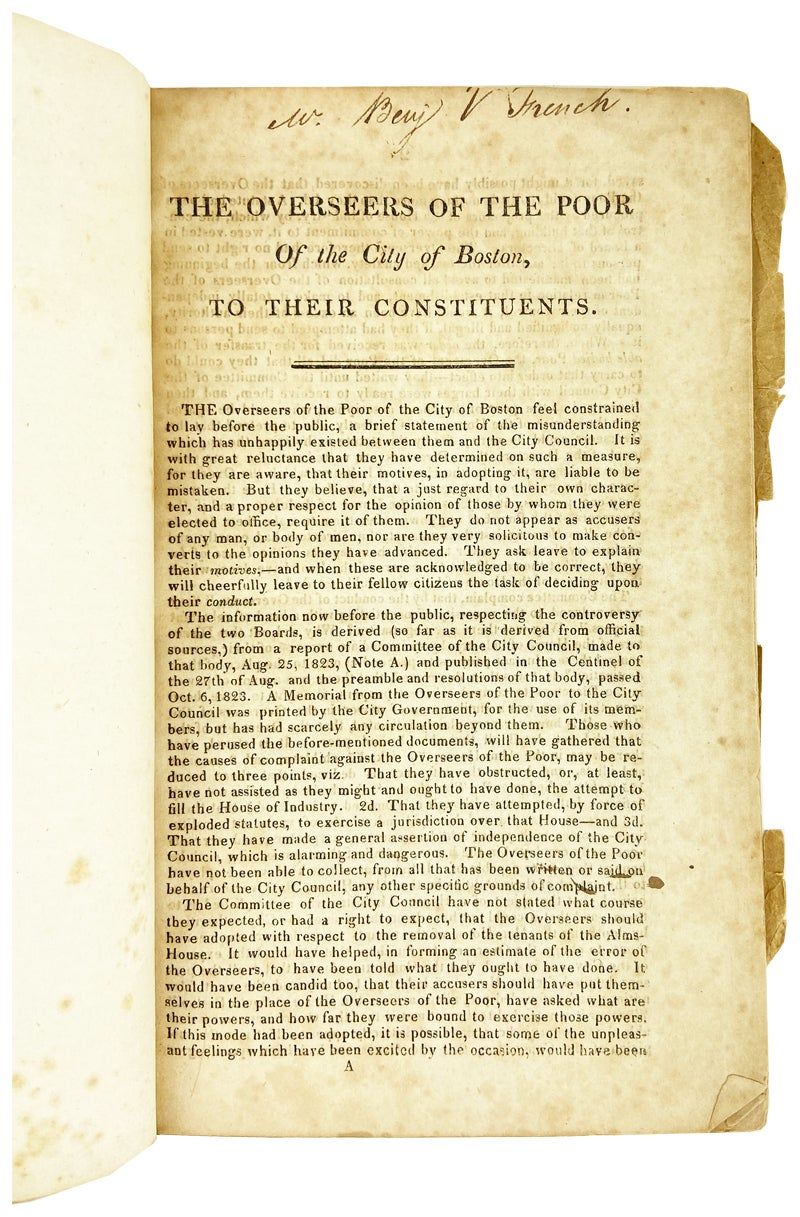 The Overseers of the Poor of the City of Boston, To Their Constituents [Caption title]