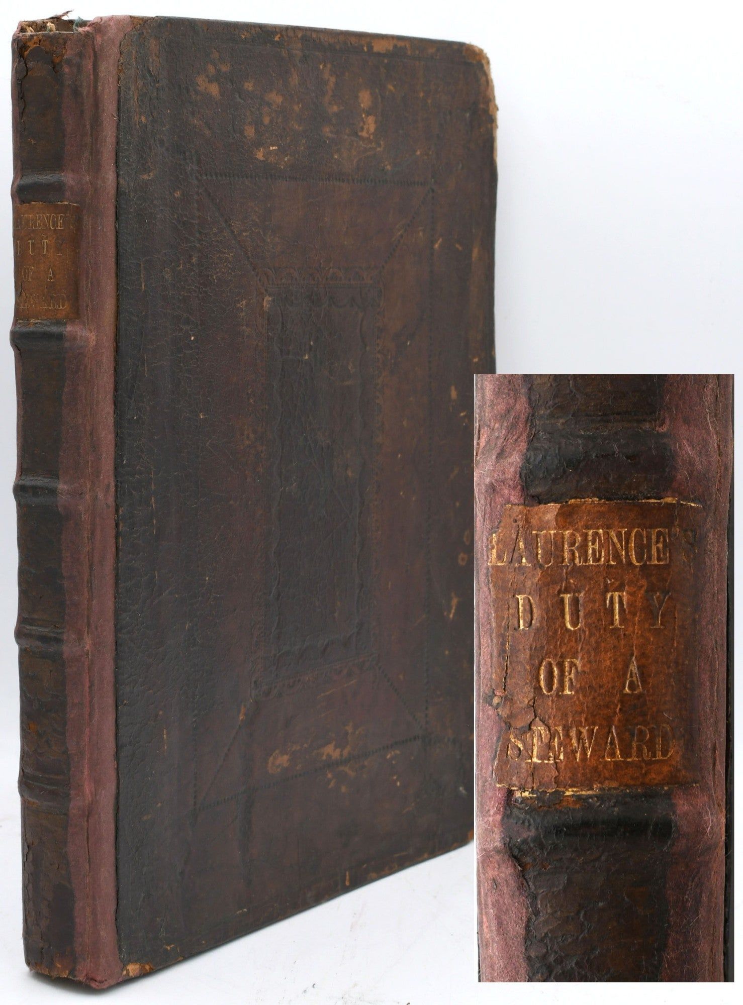 London: John Shuckburgh, 1727. First Edition. Full Leather. Very Good binding. Quarto; full calf in a Cambridge style binding; it has been rebacked and retains an early spine label; xc, 212 pages; with double-page folding plate “A Survey of Dun Boggs Farm in Haversham” as well as a double page plate of hedges.~~On the front pastedown is a sheet “Reports of Logs scaled for Keewatin Lumbering and Manufacturing -- blank form from the1880’s; on the front free endpaper is a 19th century newspaper clipping on Replanting Forest Ground. ~~This 18th century book exploresaspects of husbandry and the management of sizable estates -- from the management of accounts, and the value of manure, to the importance of making sure the mole-hunders do their jobs. Very Good binding.