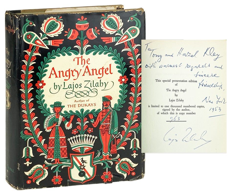 New York: Prentice-Hall, 1953. Very Good/Very Good. New York: Prentice-Hall, [1953]. Special Presentation Edition Limited to 1000 copies of which this is no. 963. Octavo; publisher's cloth-backed boards, green topstain, in pictorial dust jacket; [6],375pp. Moderate wear to jacket margins including a number of small chips and closed tears, most notably at spine crown, spine panel verso spotted, corners bumped and spine a bit cocked, textblock a shade toned, especially on pp. 160-1 from exposure to previously-removed news clipping; overall a Very Good only copy. Warmly inscribed and signed on limitation page by the author, "To Tony and Hazel Dey [?] with warmest regards and sincere friendship / New Years 1953 / Lajos Zilahy.