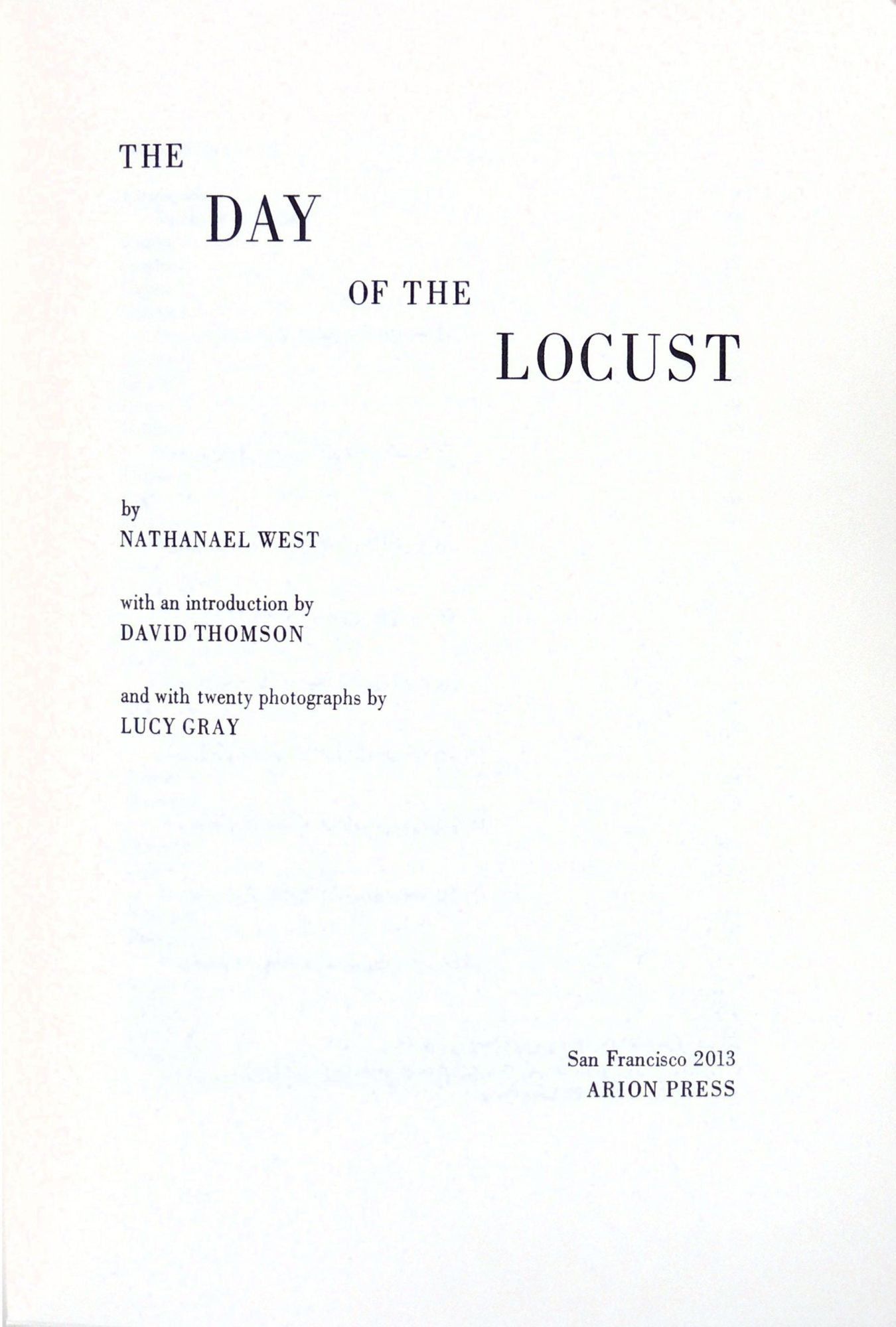 San Francisco: Arion Press, 2913. Hardcover. Fine. Hardcover. Number 84 of 400 numbered copies signed by the photographer, Lucy Gray. There were also 26 lettered copies for complimentary distribution. The author of this pivotal work died at the age of 37 along with his wife in a car crash in 1940, a year after this book was published. It took years for the book to become recognized as an American classic and for critics to agree now that it is the best novel ever written about Hollywood. In his introduction, the film critic and historian David Thomson discusses the novel and its relationship to Hollywood and the movies in the Golden Age of the late thirties and its importance to American fiction. The twenty photographs were taken by Lucy Gray, an award winning photographer and film maker. She and David Thomson, writer of the introduction, are married.