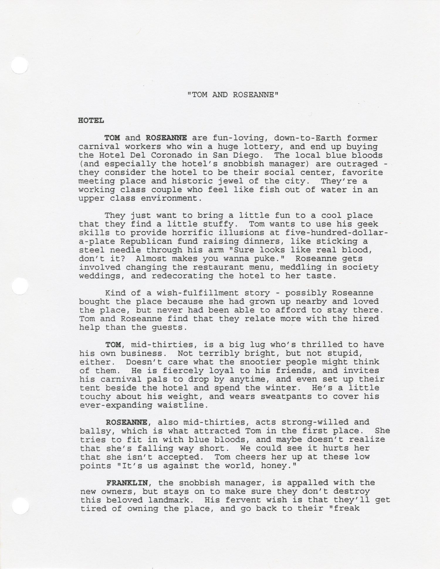 Archive of original treatments and proposals for 16 unproduced television series, circa 1995