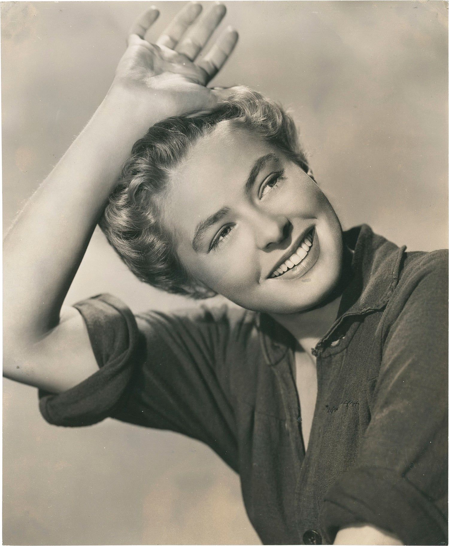 N.p.: N.p., 1943. Vintage borderless portrait photograph of actress Ingrid Bergman in shirtsleeves, publicity for "For Whom the Bell Tolls," 1943.