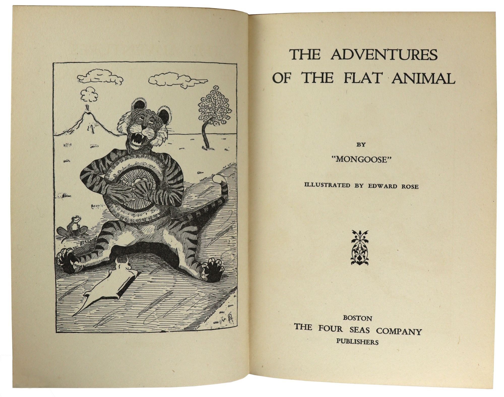 Uncommon children's book populated by fantastical critters--a Yabbit, a pudding-fed Oolibeast, and the titular Flat Animal among others. OCLC locates just three copies as of October, 2024, at the NYPL, Yale, and Northwestern.