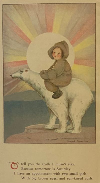 New York / Rochester: The Hubbell-Leavens Co. / Stecher Litho Co, 1917. Stapled Binding. Good. 0x0x0. Price, Margaret Evans. Edges rubbed, 3 inch tear along spine base, ink gift note dated 1922 inside front wrapper. 1917 Stapled Binding. [12 pp.] Verse by Helen C. Dods accompanied by Margaret Evans Price's color illustrations. Printed by Rochester, New York's Stecher Litho Company.