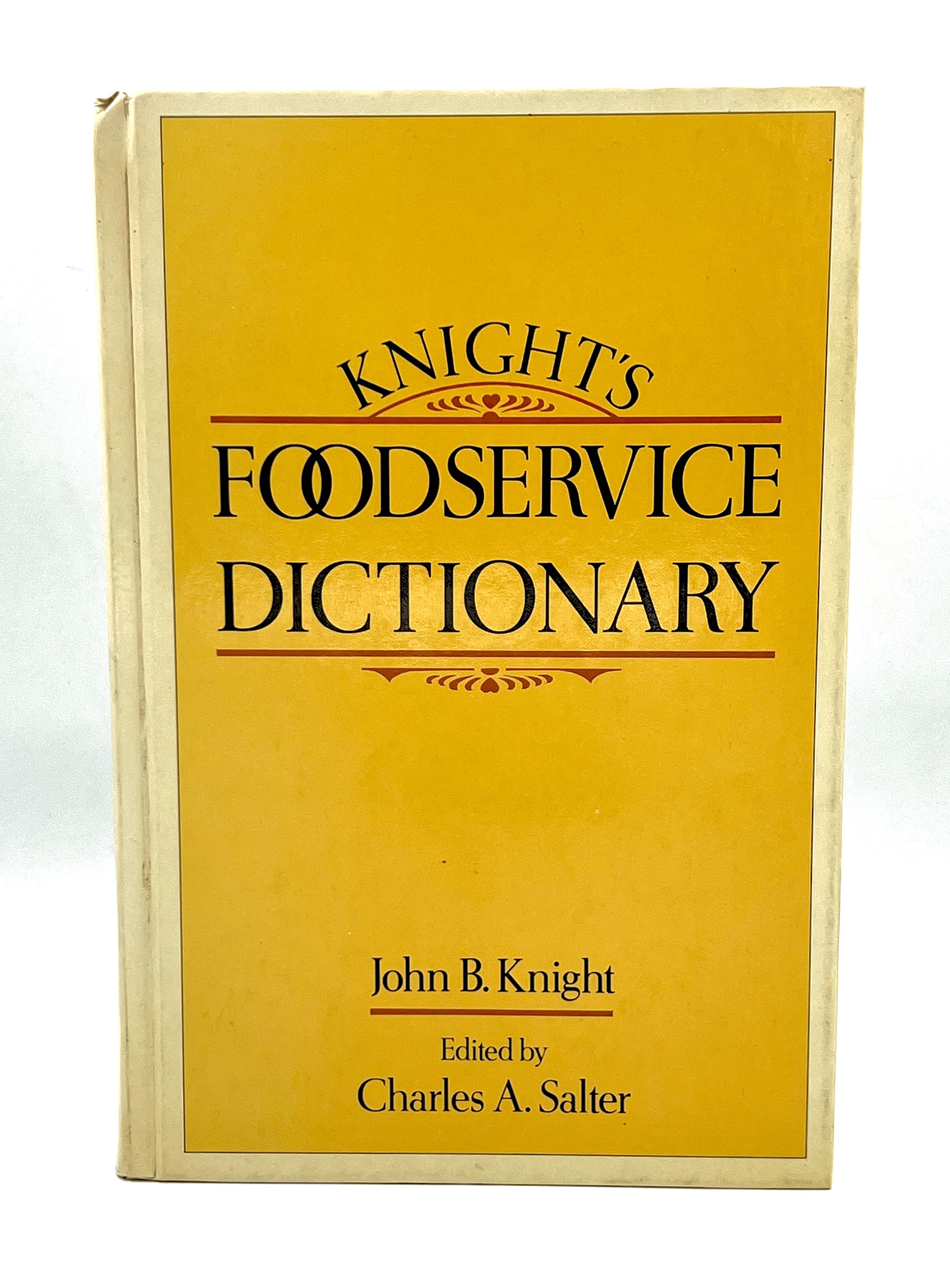 New York: Van Nostrand Reinhold Company, 1987. Yellow glossy boards. Very good. 393 pages. 23.5 x 15.5 cm. A comprehensive dictionary first to define terms from ALL aspects of the foodservice industry including: accounting, advertising, basic ingredients, basic preparation methods, computers, cost controls, foodservice equipment, management, marketing, menu development, nutrition, printing, safety, sanitation. Interior clean, boards very lightly rubbed at corners.