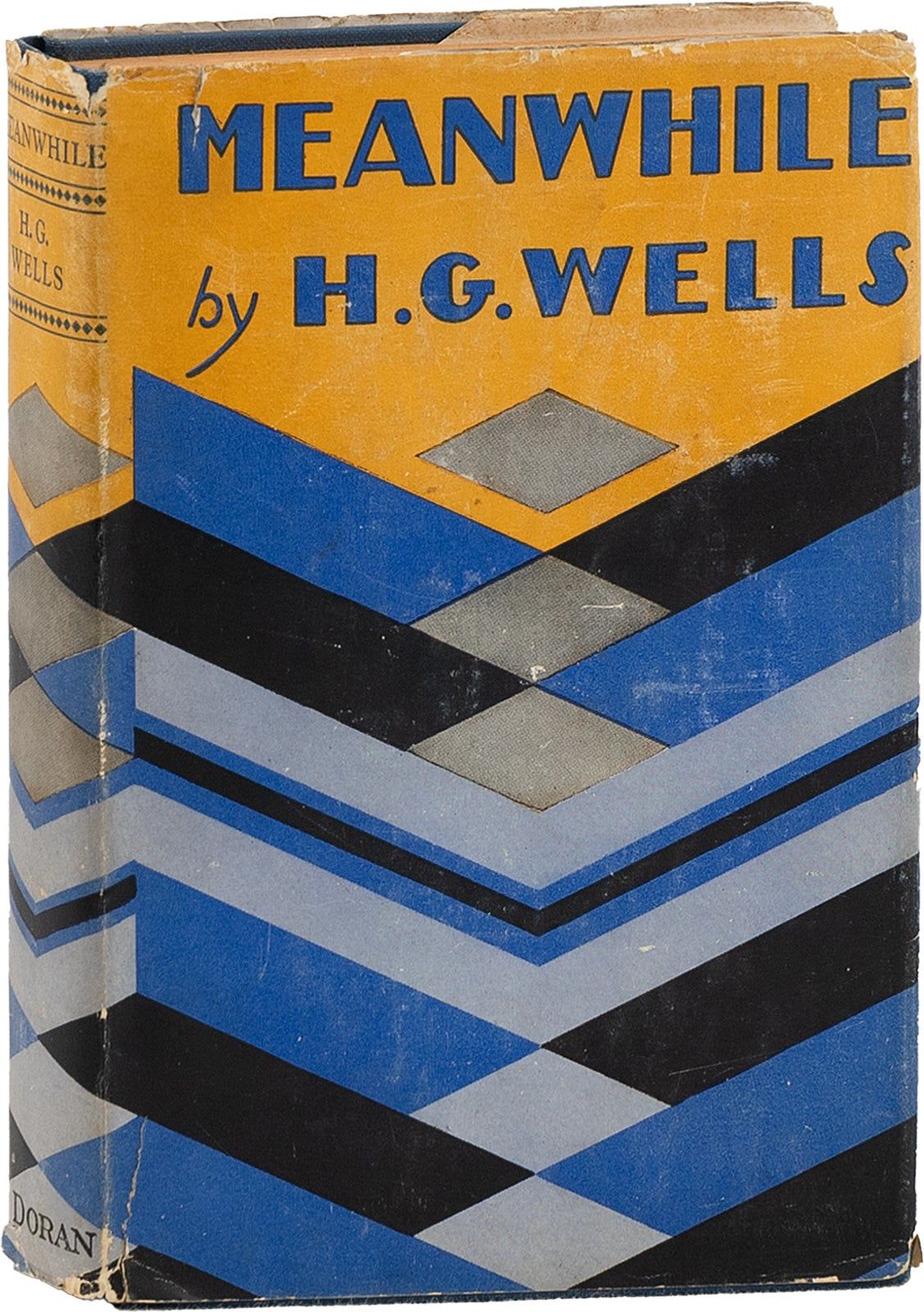 New York: George H. Doran Company, 1927. First American Edition. First Printing. Octavo (20cm); blue cloth-covered boards, titling stamped in gilt on spine, and blind ruling and Wells' facsimile signature blind stamped to front cover; orange topstain; fore- and lower- edges untrimmed; dustjacket; [12],13-320pp. Finger-soil to rear cover, light wear to spine ends, corners tapped (though still sharp); Near Fine. Dustwrapper, (priced $2.50 net), shelf-worn, spine-faded, with dust-soil to panels, 1" tear to front spine fold, with tears, chips, and creases to spine ends and extremities; Very Good. Doran Books advertisements printed on rear dustjacket flap. Late career novel by Wells, following the tumultuous relationship of a wealthy British couple living in an Italian villa, ca.1926. [82557].
