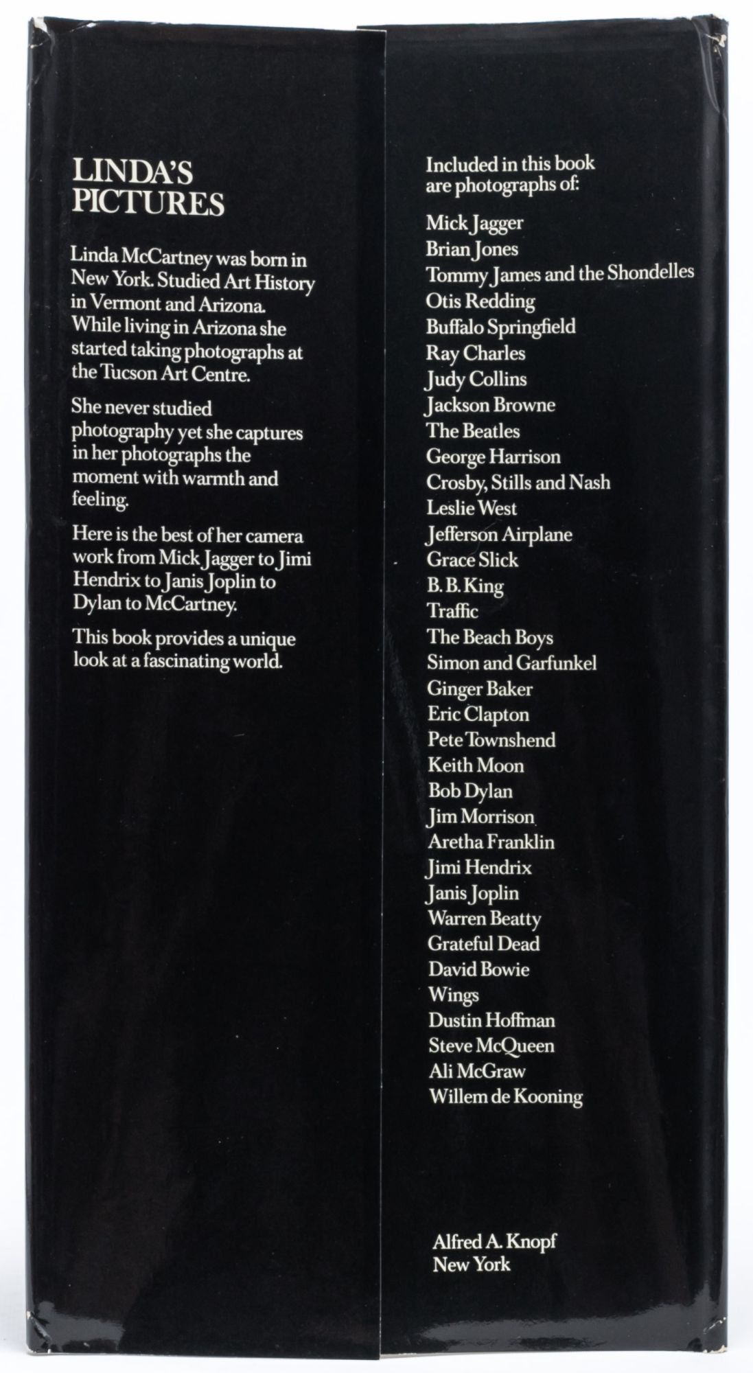 Jones was a musician, producer, composer, film score writer and songwriter who received many awards including 28 Grammys, but is probably most noted for producing Michael Jackson’s three great albums, Off the Wall, Thriller and Bad, of which Thriller is the bestselling album of all time. Linda’s first book of photography, presenting images of her family and the rock and pop world of the early seventies. Near Fine in Very Good + dust jacket.