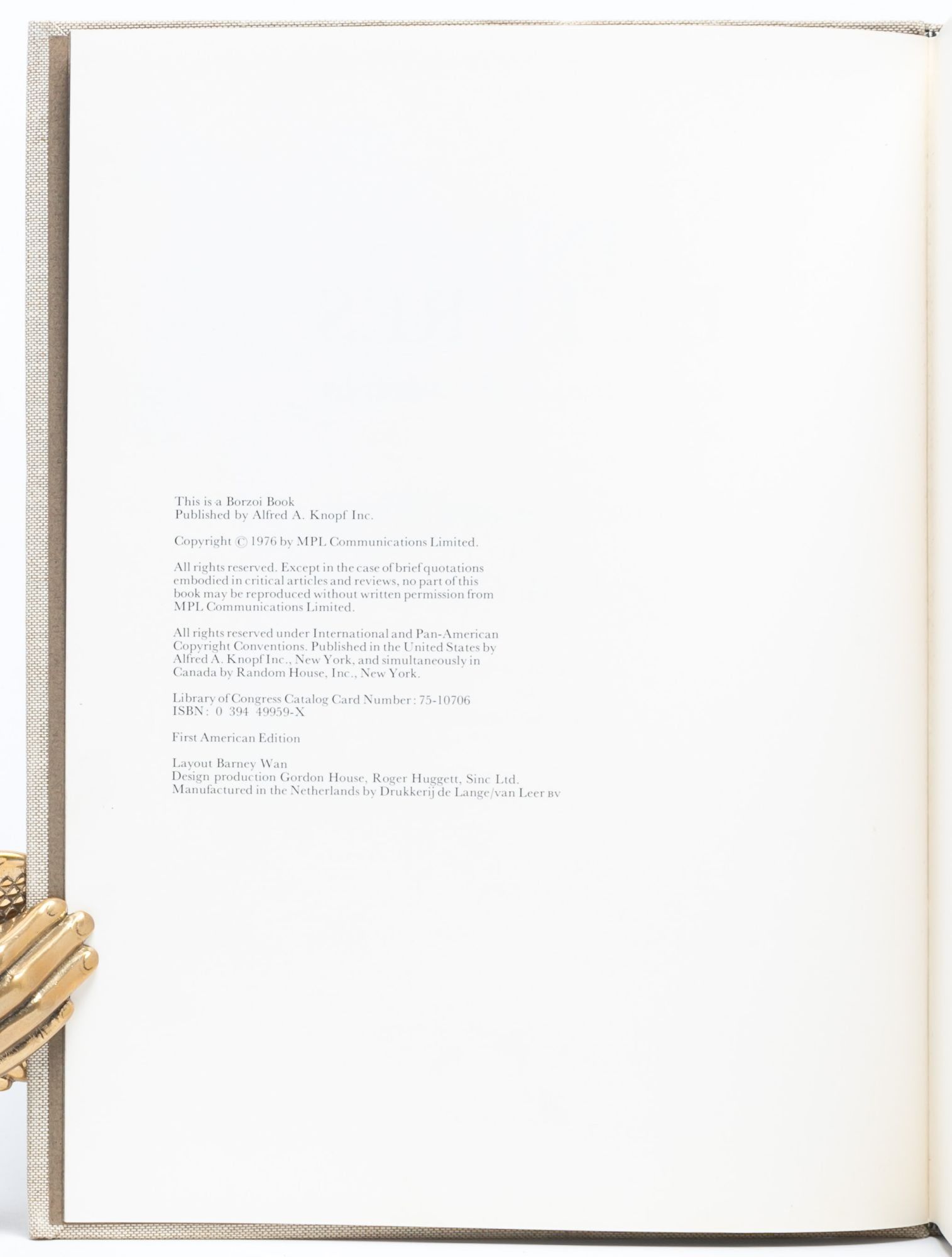 New York: Alfred A. Knopf, 1976. First American edition. Near Fine/Very Good +. Inscribed by the photographer on the half title: “For Peggy, Quincy and midgets, love & kisses, Linda McCartney, 1982." The recipients were Quincy Jones, his third wife Peggy Lipton and their daughters, Kidada and Rashida. In 1982, Paul McCartney worked with Jones on Michael Jackson’s Thriller album, dueting on "The Girl is Mine."