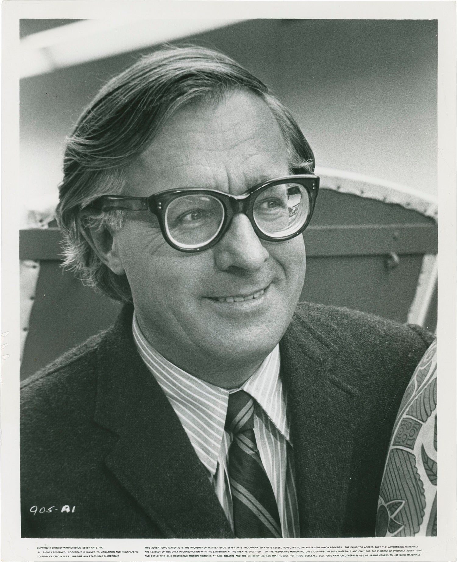 Burbank, CA: Warner Brothers - Seven Arts, 1968. Vintage reference photograph of writer Ray Bradbury in 1968, taken to publicize the 1969 movie "The Illustrated Man."
