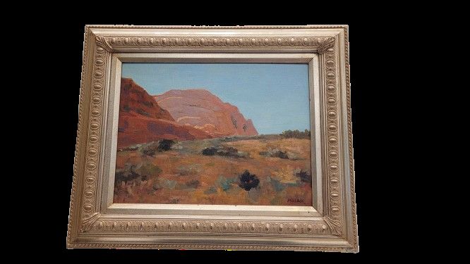 2003. Painting. J. Thomas Mulder. Original oil painting on canvas. 12" X 15 1/2' [18 x 22 In Frame] May require extra shipping due to weight. J. Thomas Mulder was born in Salt Lake City on March 14, 1939 to Dr. William and Gweneth Gates Mulder and spent most of his life in the city. His father was a Dutch immigrant who came to the U.S. with his parents in 1920. Six years later they moved to Salt Lake City. and WIlliam Mulder became an English professor at the University of Utah At his death earlier this year at the age of 92, Tom Mulder was described as “a gentleman scholar, mentor, bibliophile, Mormon historian, English and American studies professor and advocate of Indo-American scholarship.”.