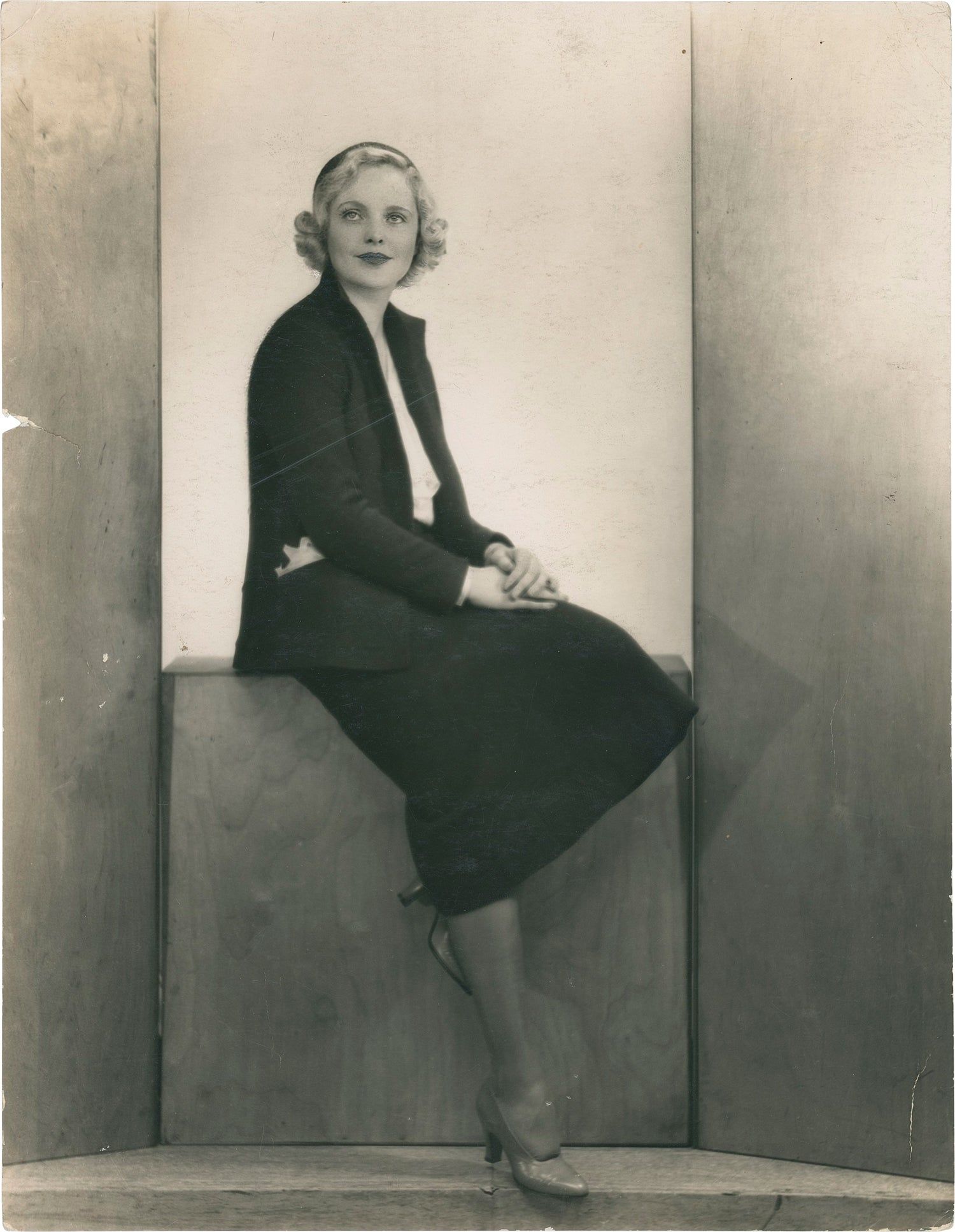 N.p.: N.p., 1923. Vintage borderless double weight photograph of British actress Joan Barry. Contemporary manuscript labels affixed to the verso, one mentioning Barry's appearance in Dorothy Brandon's 1923 play "The Outsider."